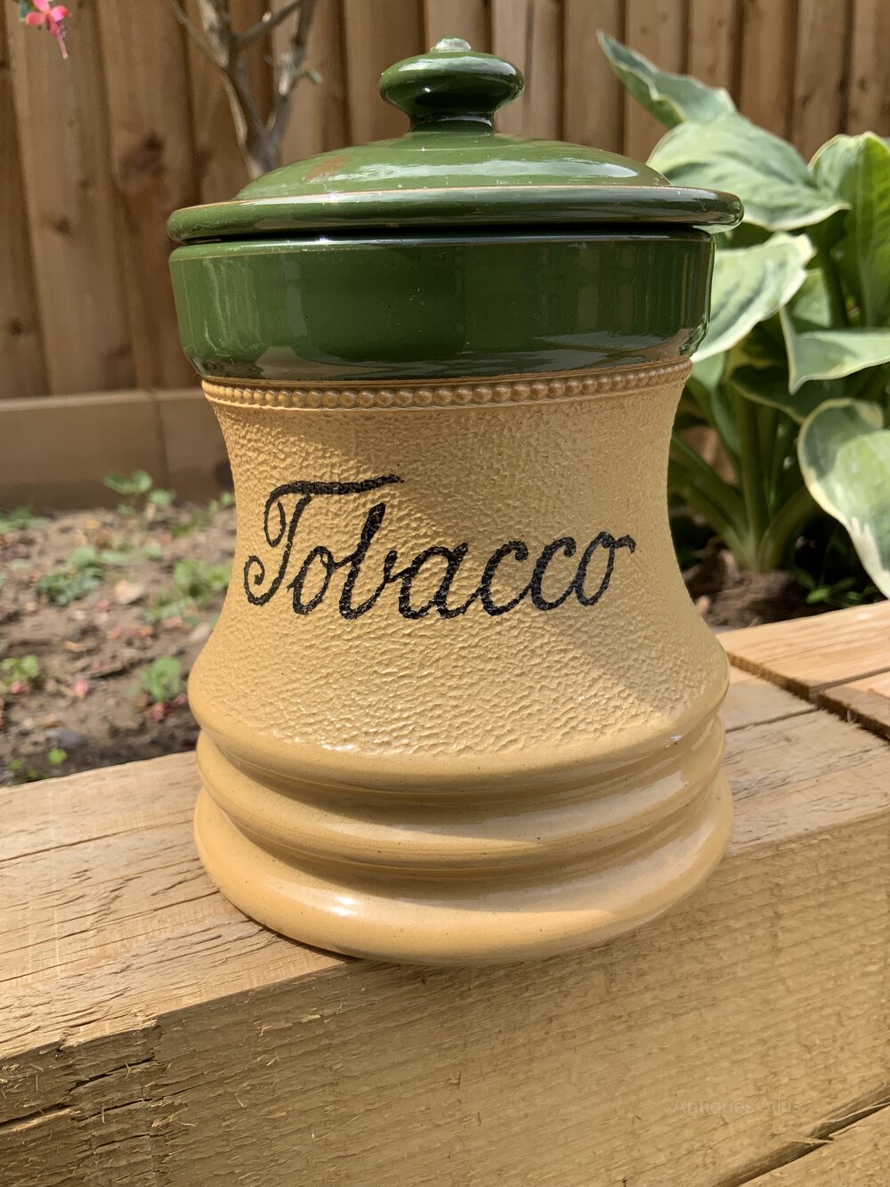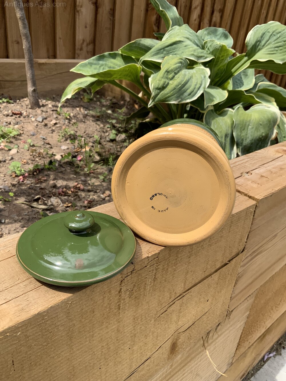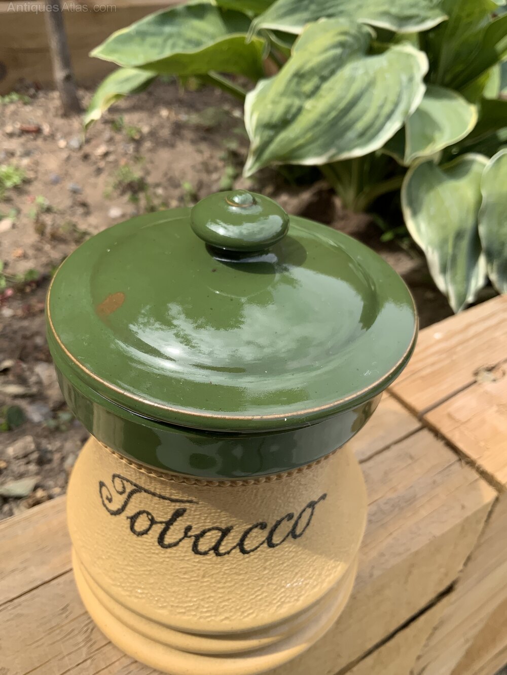 Lovely Antique Tobacco JarGreen glazed border and lid