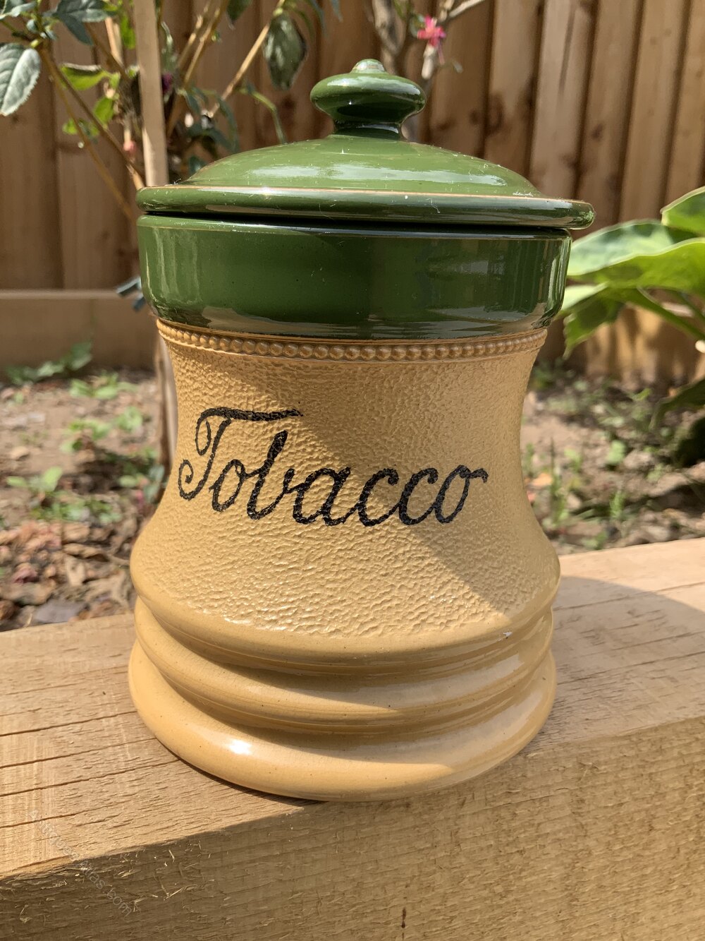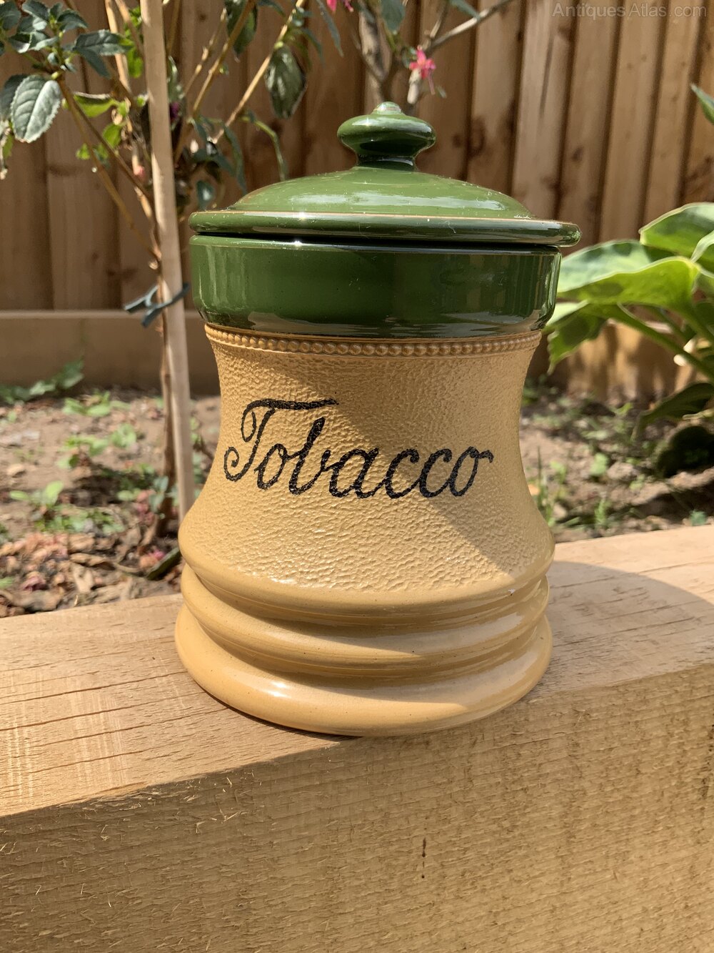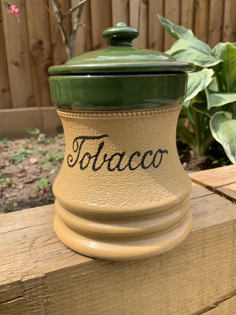 Lovely Antique Tobacco JarGreen glazed border and lid