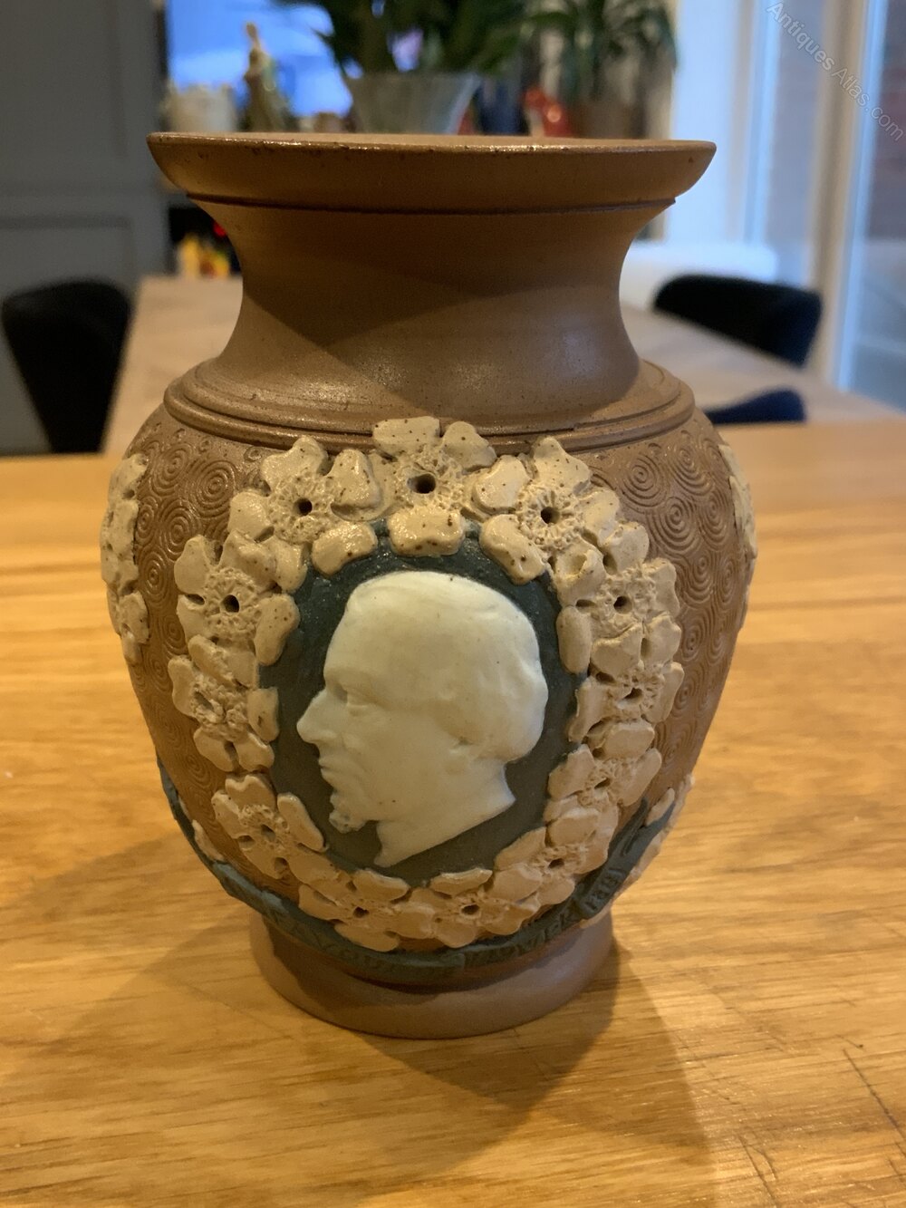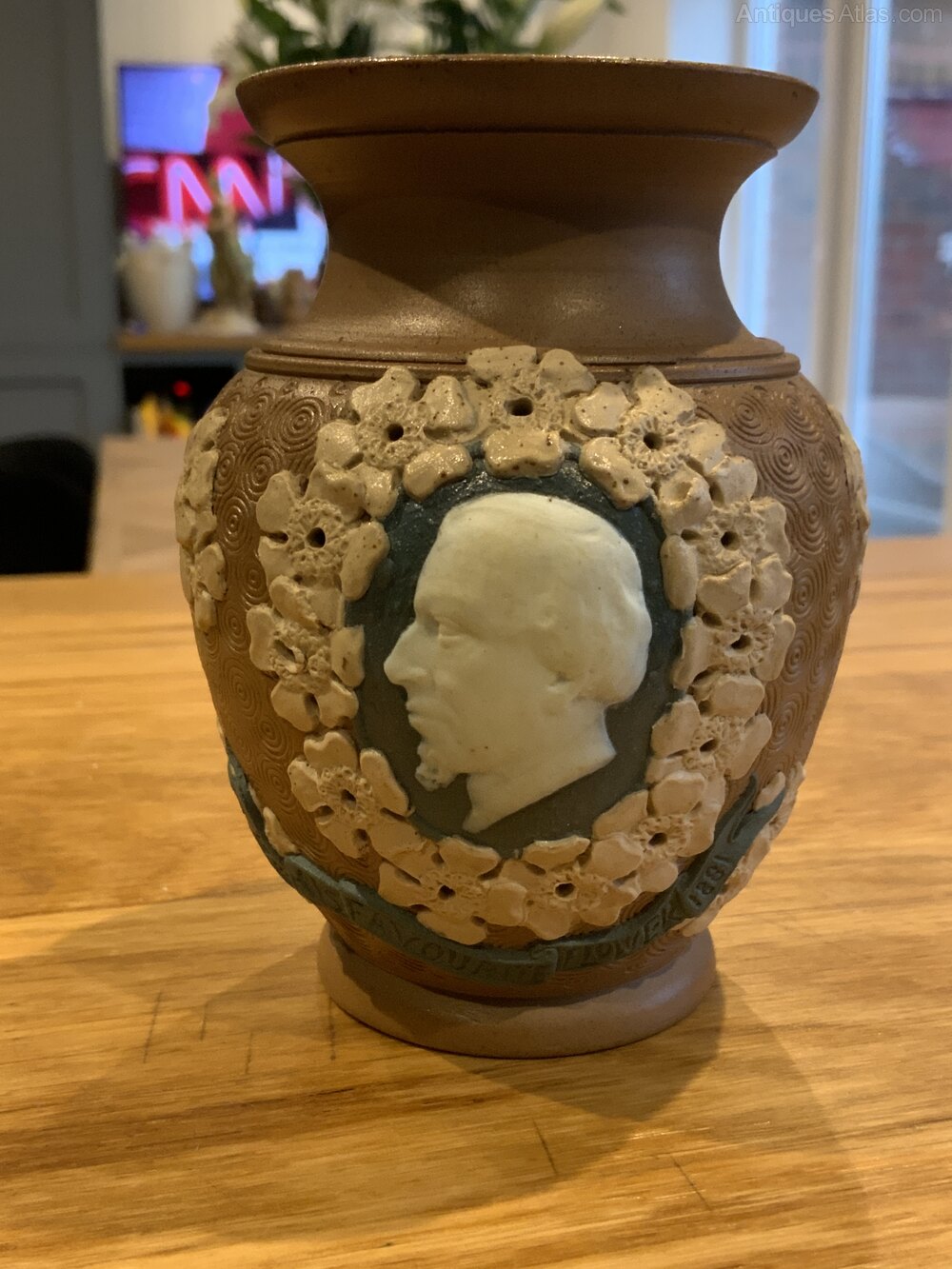 Doulton Lambeth Silicon Ware Vase of Benjamin Disraeli 1881Inscribed with "His Favourite Flowers"