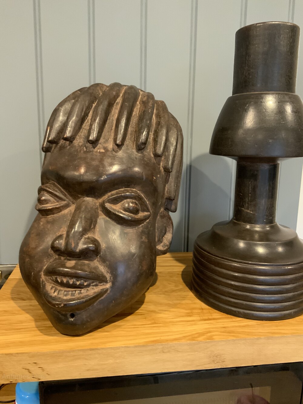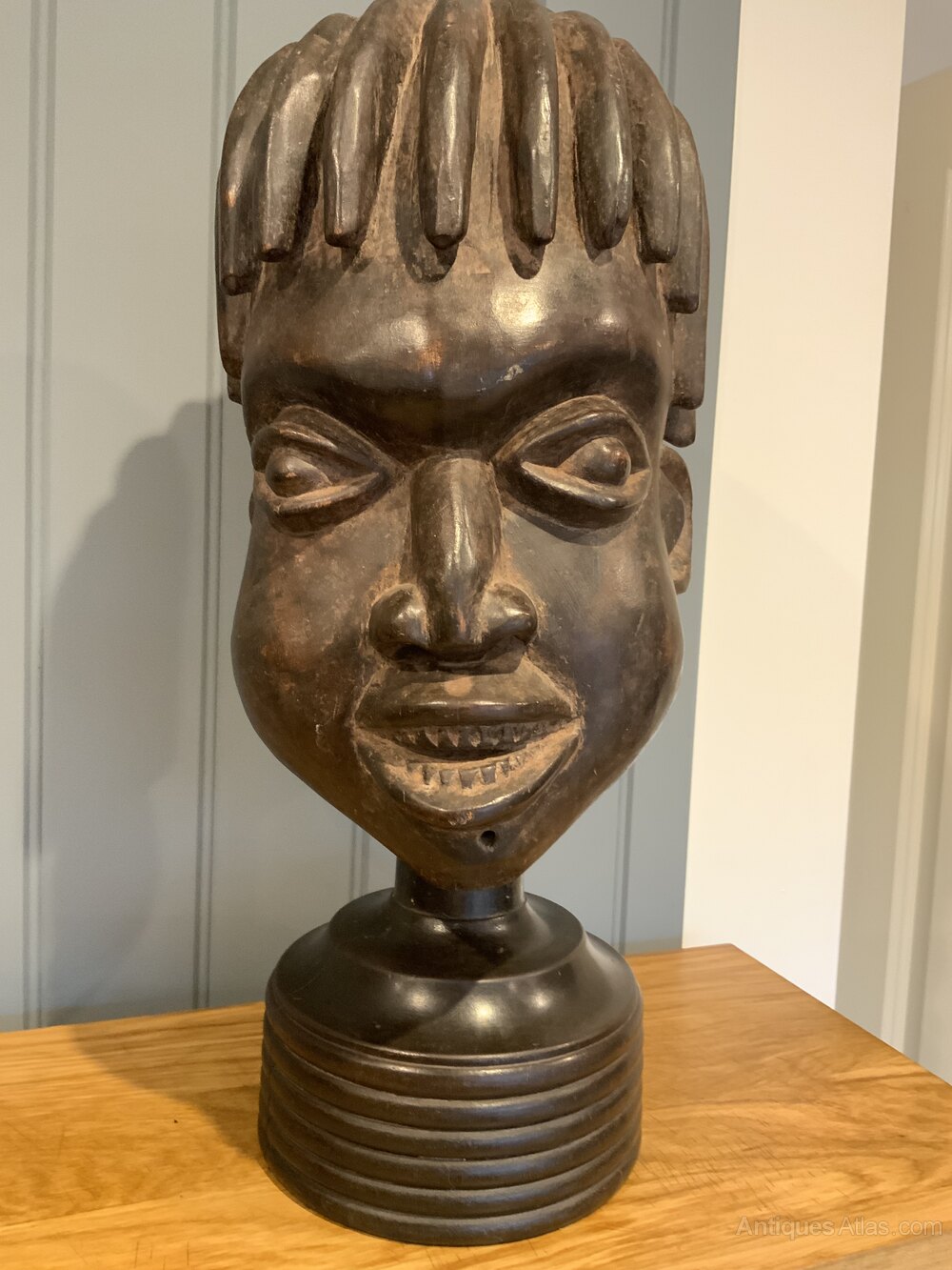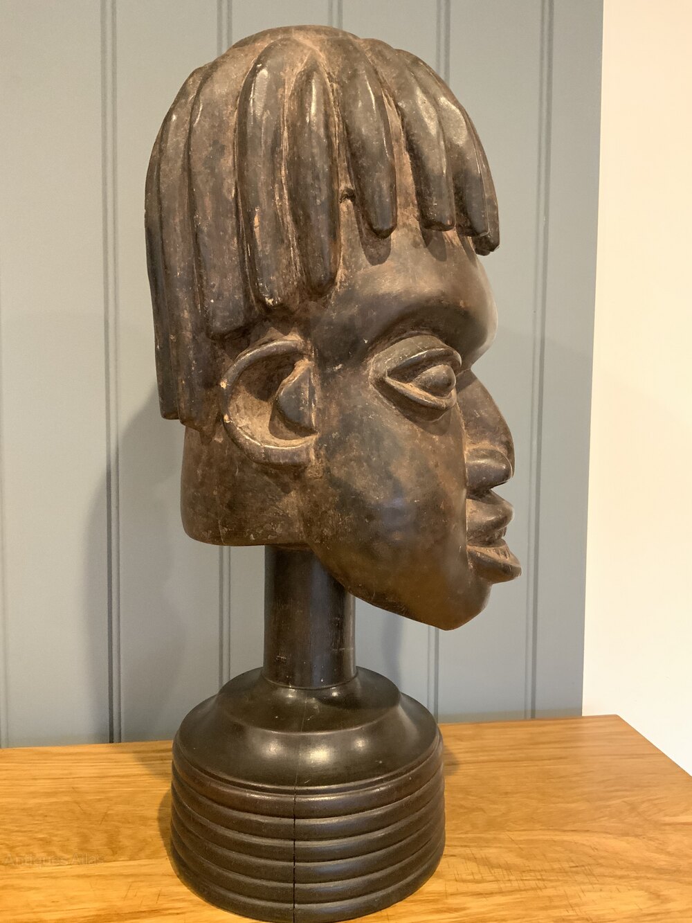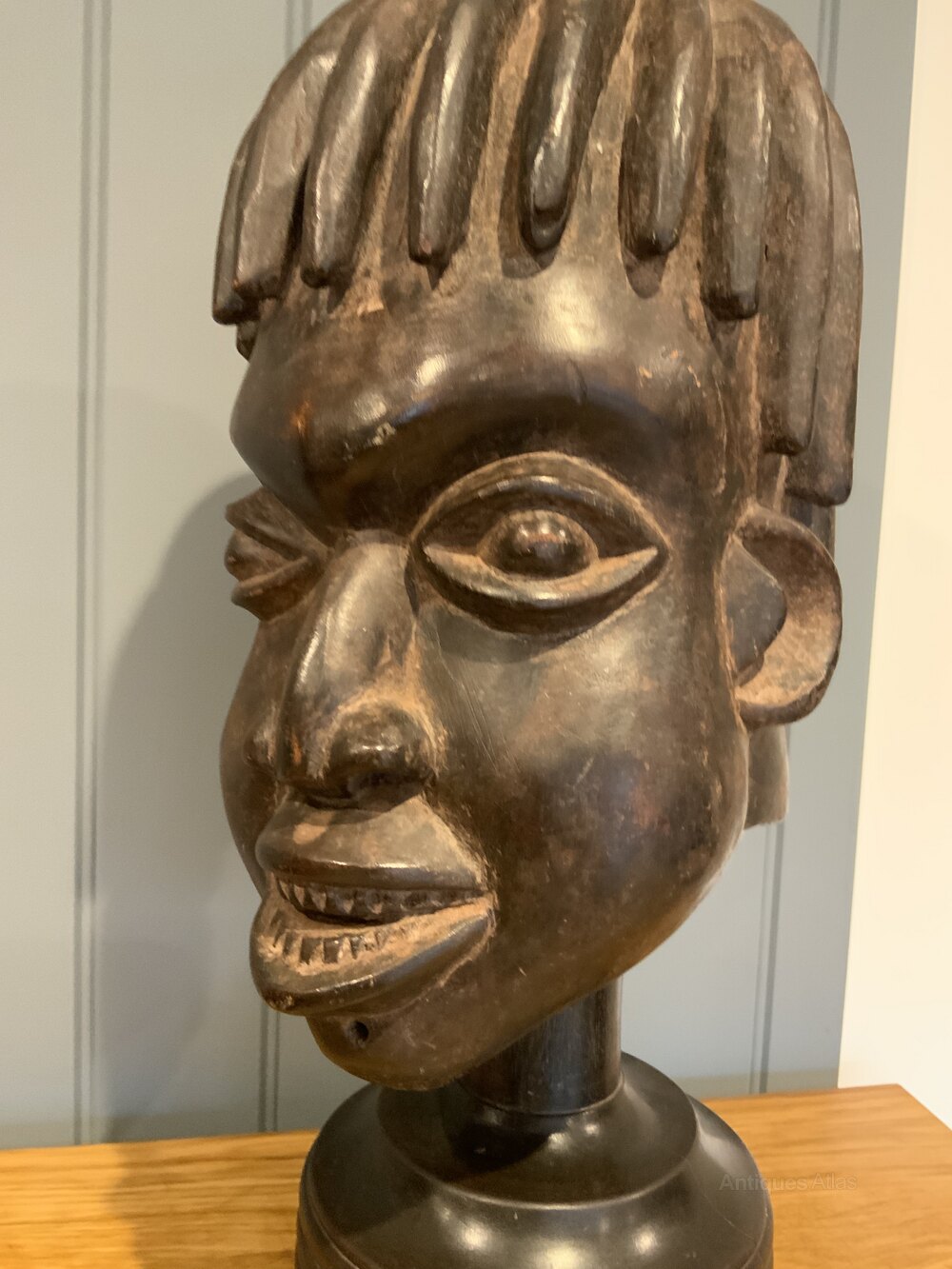 Tribal Art - Bamileke Helmet Mask on a Turned StandHeight with stand 52cms