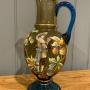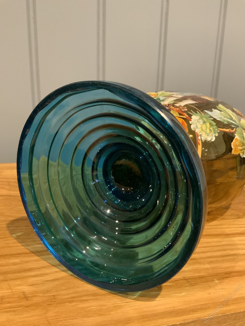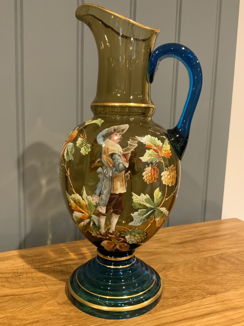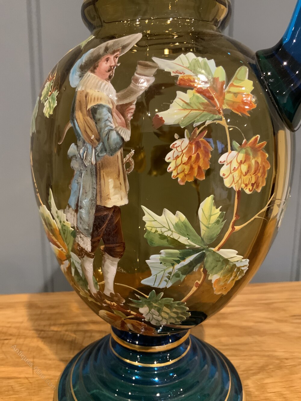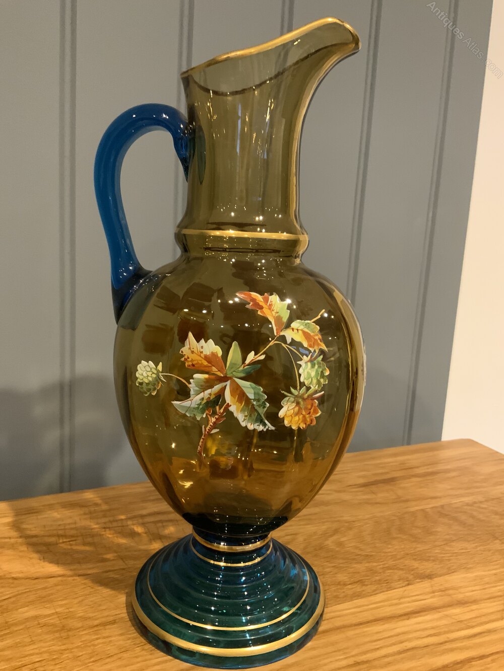 Bohemian Amber and Blue Glass Claret Jug Enamelled in PolychromeHeight 34cms