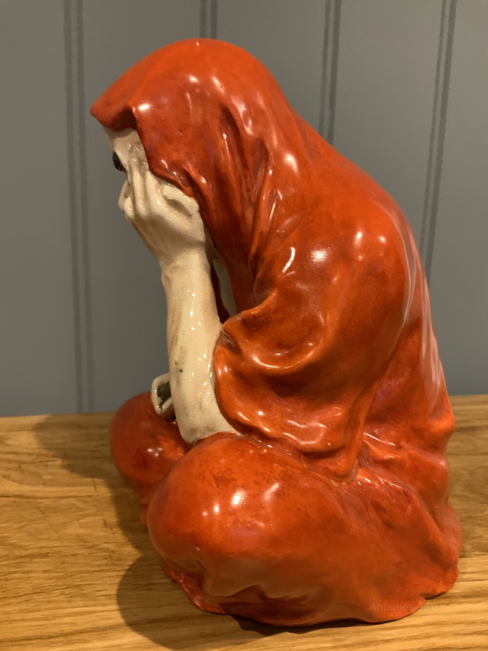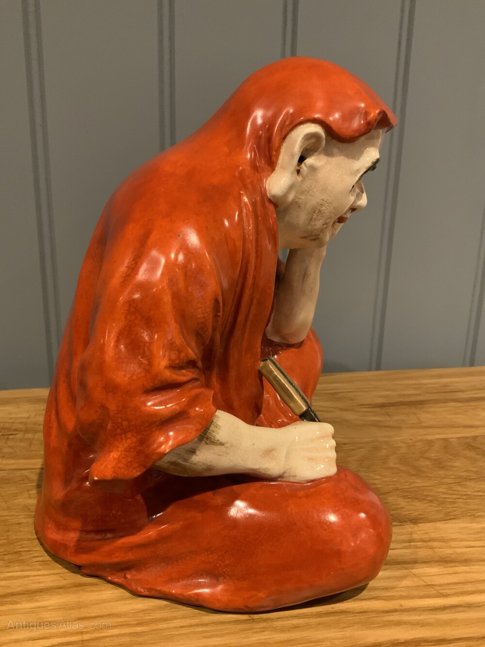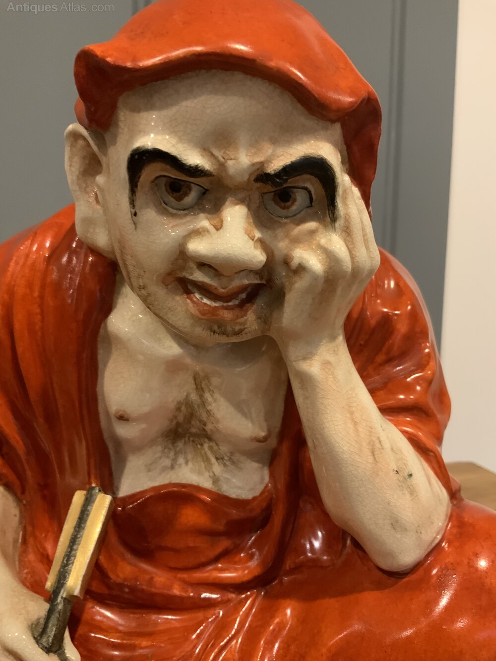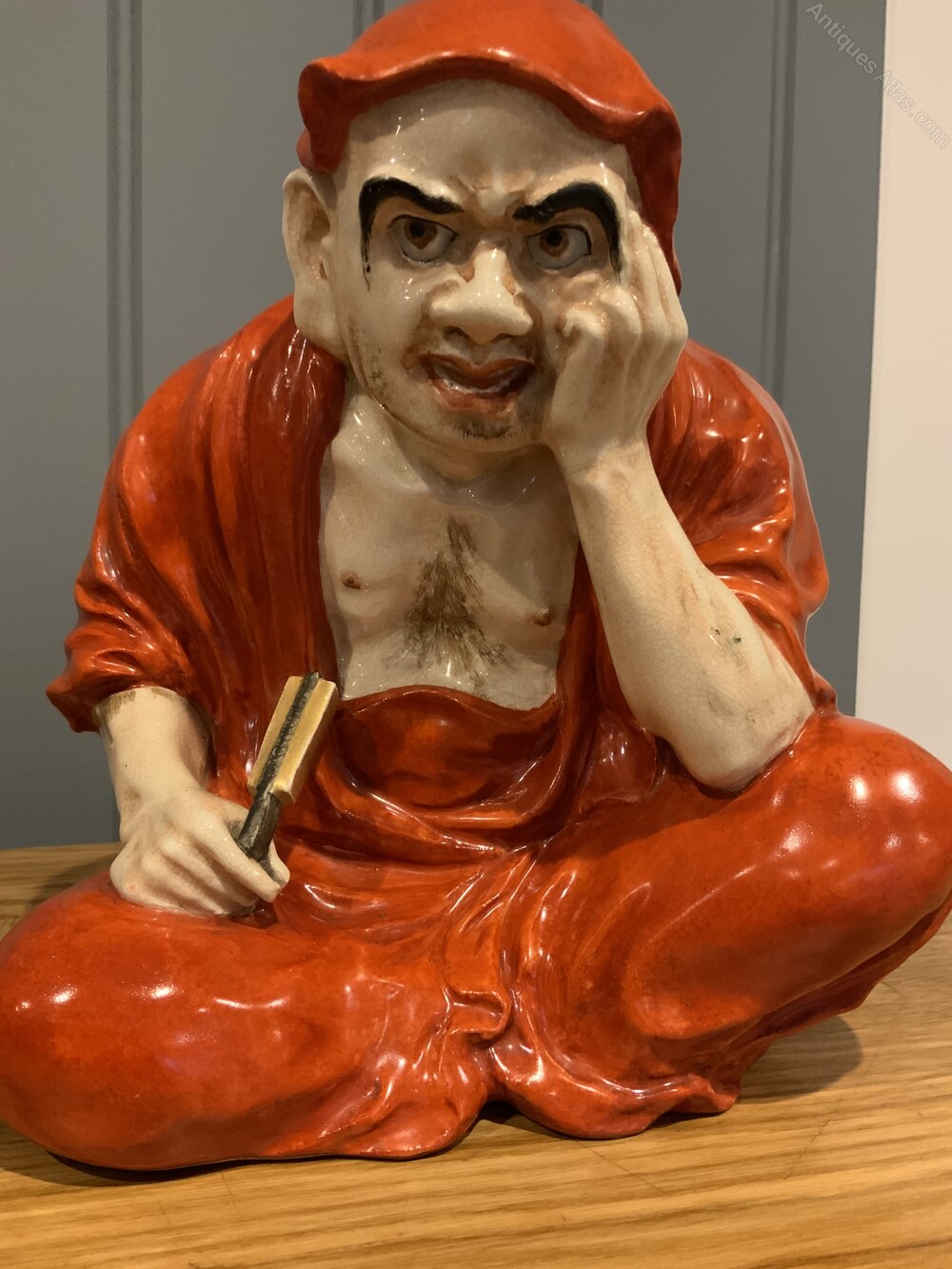 Large Antique Japanese Meji Period Porcelain Figure of a Daruma MonkPainted in Polychrome