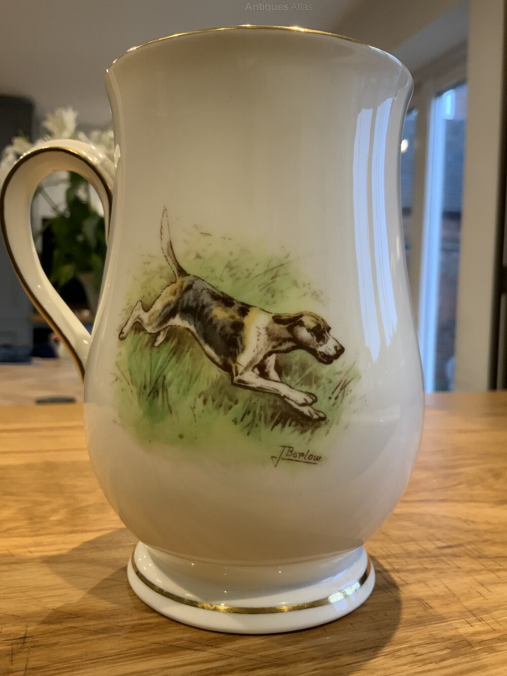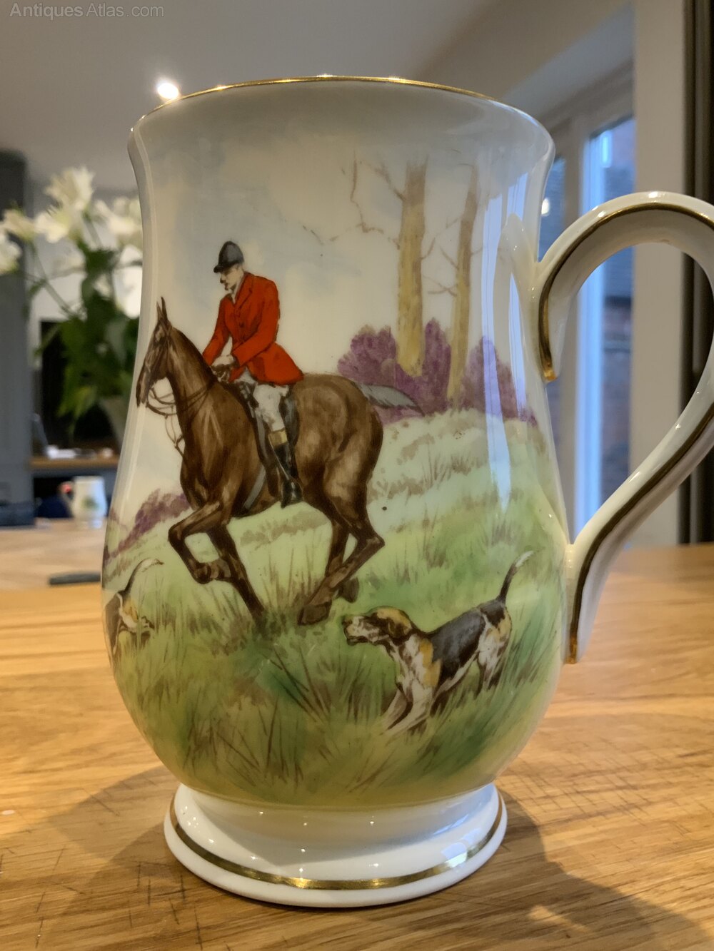 Antique Royal Crown Derby Gold Rimmed Hunting Tankard Signed BarlowLovely colourful hunting scene to the front
