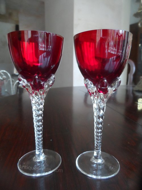 lovely Vintage Pair Of Ruby Glasses Twisted Stem