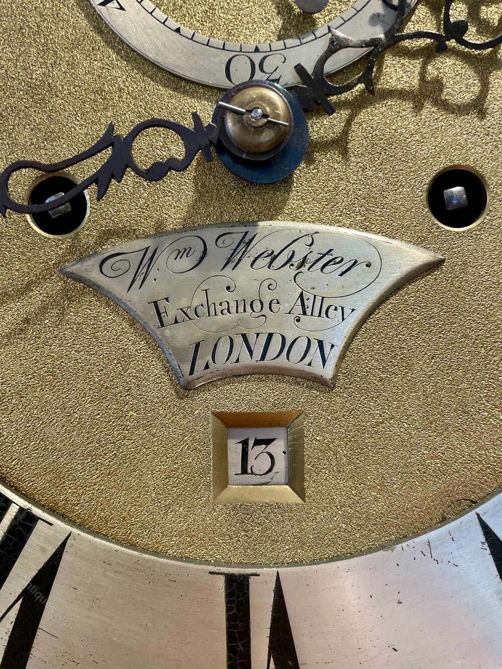 William Webster (II) worked in Exchange Alley, in the heart of London''s clockmaking district, having been apprenticed in 1727. He was a full member of the Clockmakers Company 1734-1776.