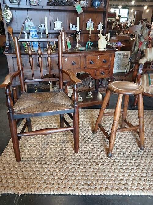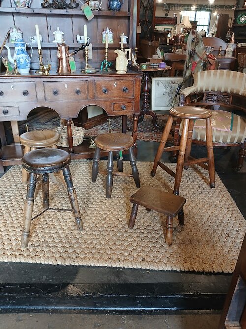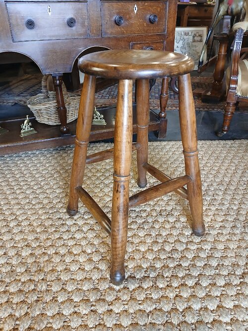 ConditionGreat looking large scale stool.Nice mellow colour to the well used oak timber, some marks etc here and there that add to its charm.