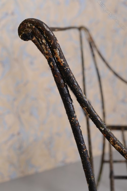Blacksmith made with no welding, the cross stretchers on the back have a lead motif to the centre.