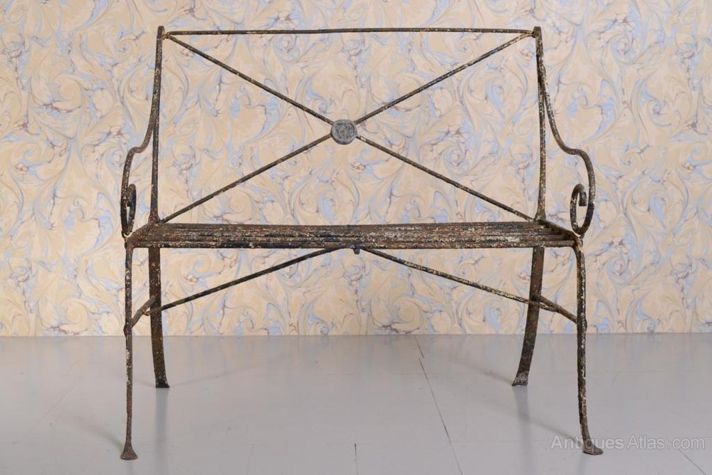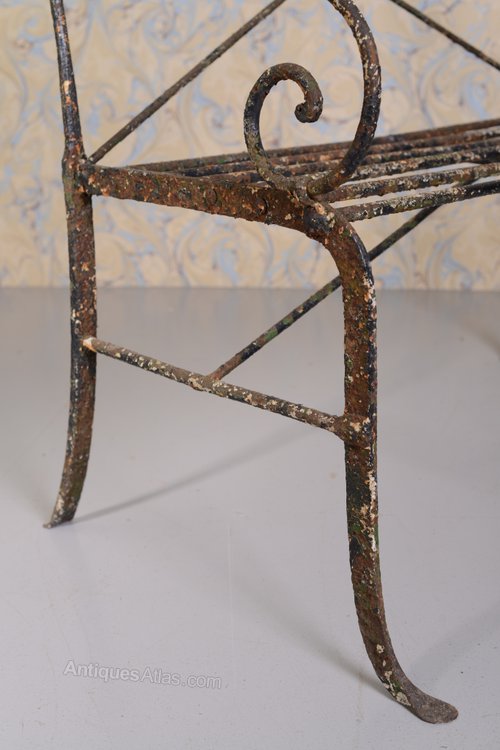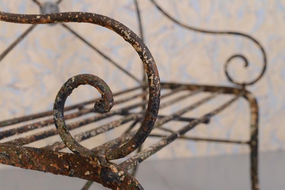 Regency Antique Wrought Iron Garden Seat.A beautiful, simply designed, early 19th century English country garden antique bench in wrought iron.