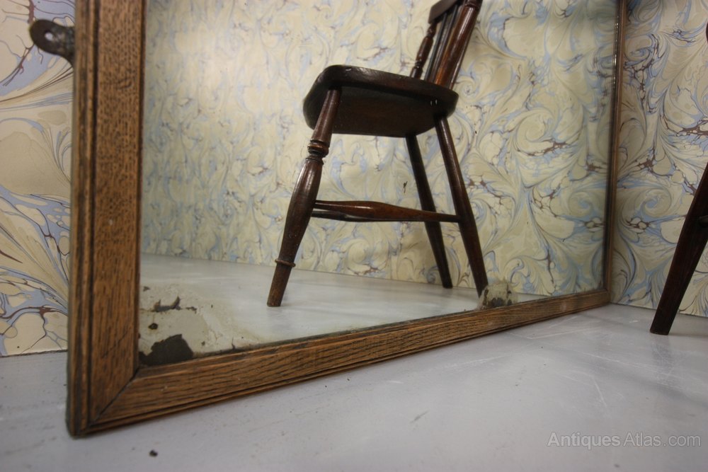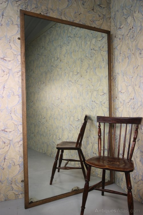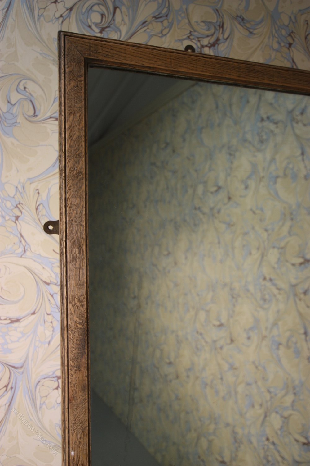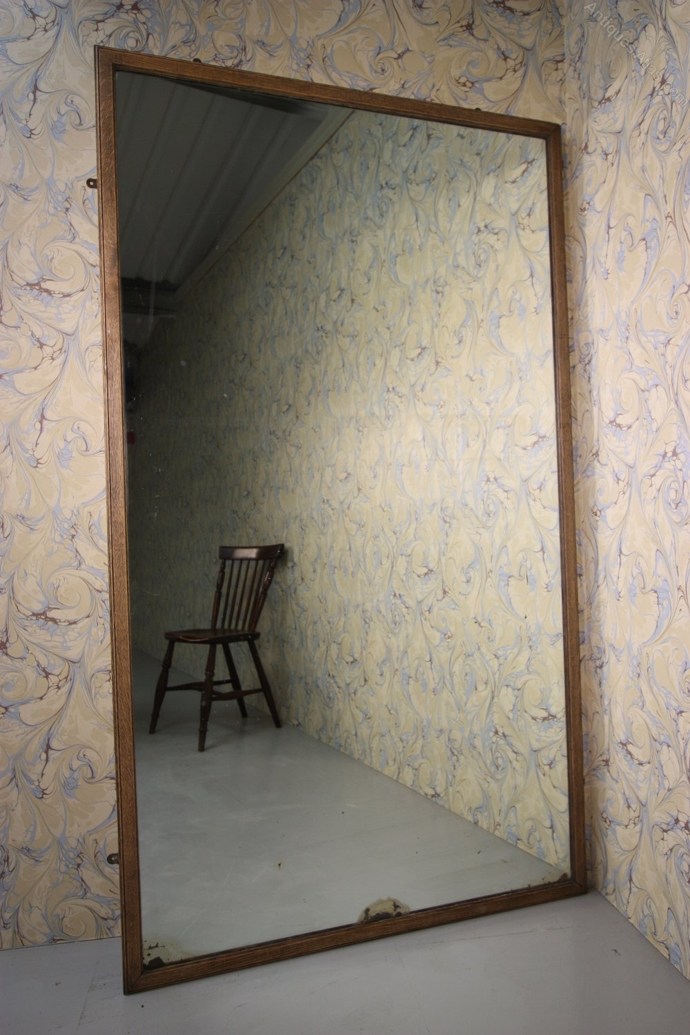 Large 19th Century Antique Oak Outfitters Mirror.This large English antique outfitters mirror has a plain oak frame with the original, plate glass mirror and the original planked pine backboards. In very good condition. Large enough to use as a dressing mirror leant up against the wall. Dating from around 1880.