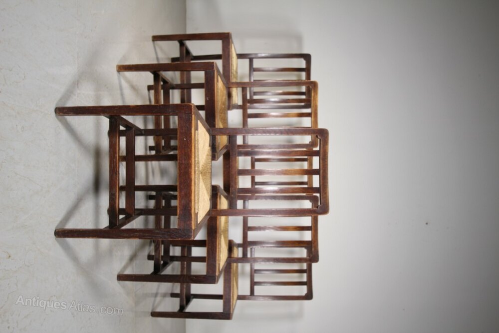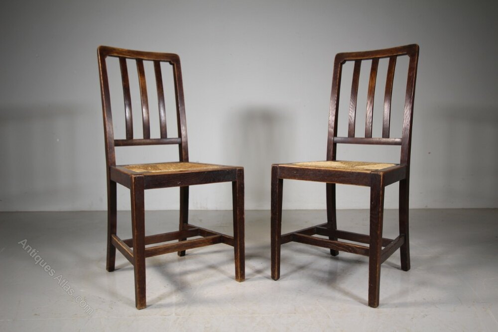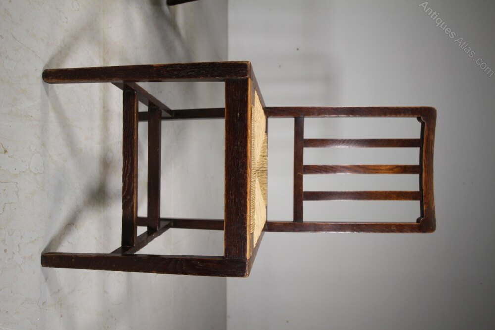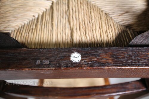 Set of Six 1920’s Heals of London Oak Dining Chairs – LabelledA very good quality set of six, labelled Heals antique oak dining chairs form the early twenties. All six are in excellent strong condition, in the original finish and have the lovely, perfect drop in rush seats. The chairs stand on square, tapering legs with double stretchers connecting the legs. A good model and an ample size.