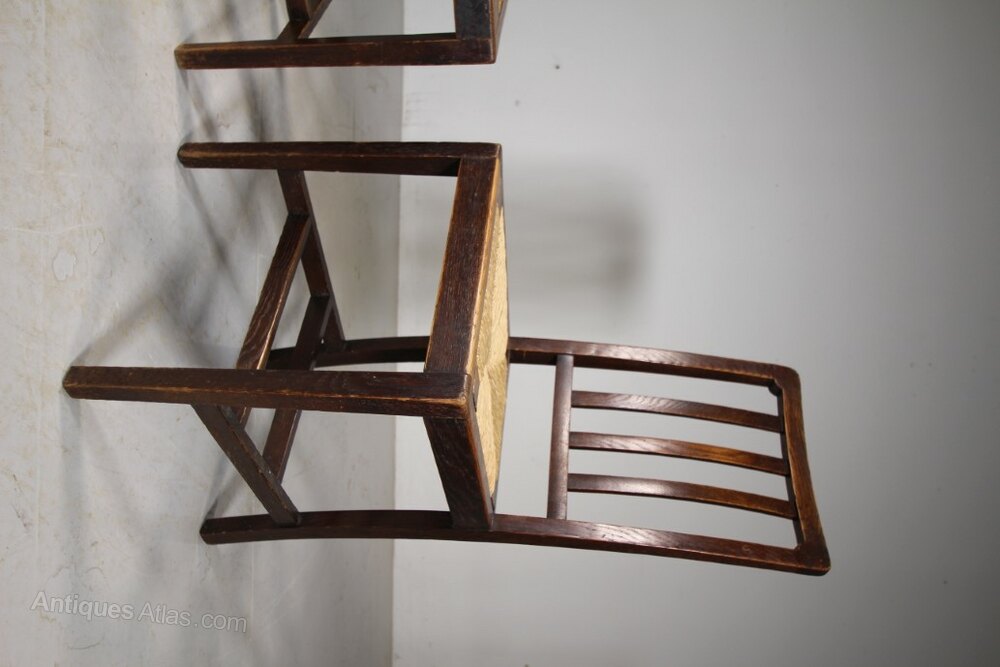 Set of Six 1920s Heals of London Oak Dining Chairs
