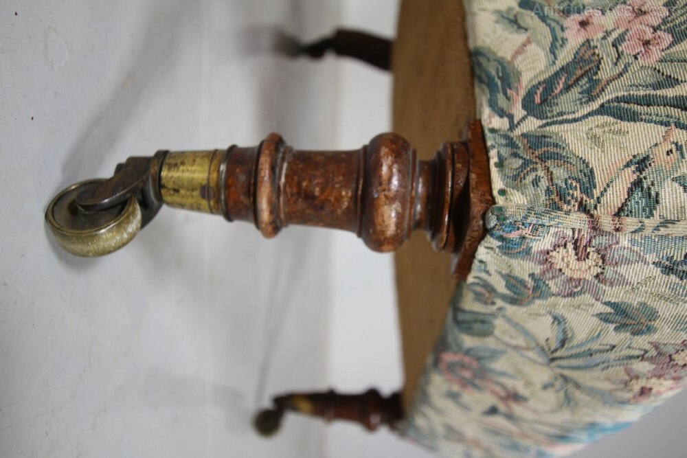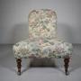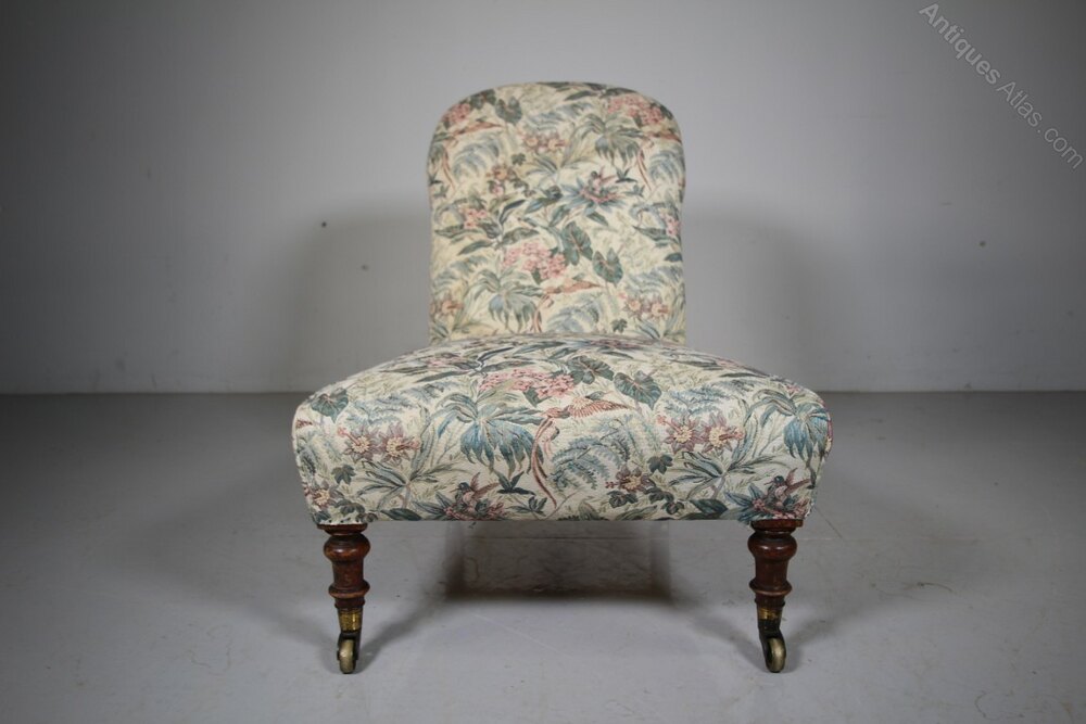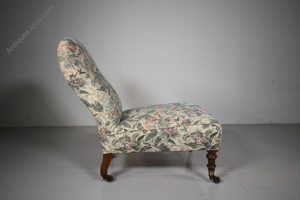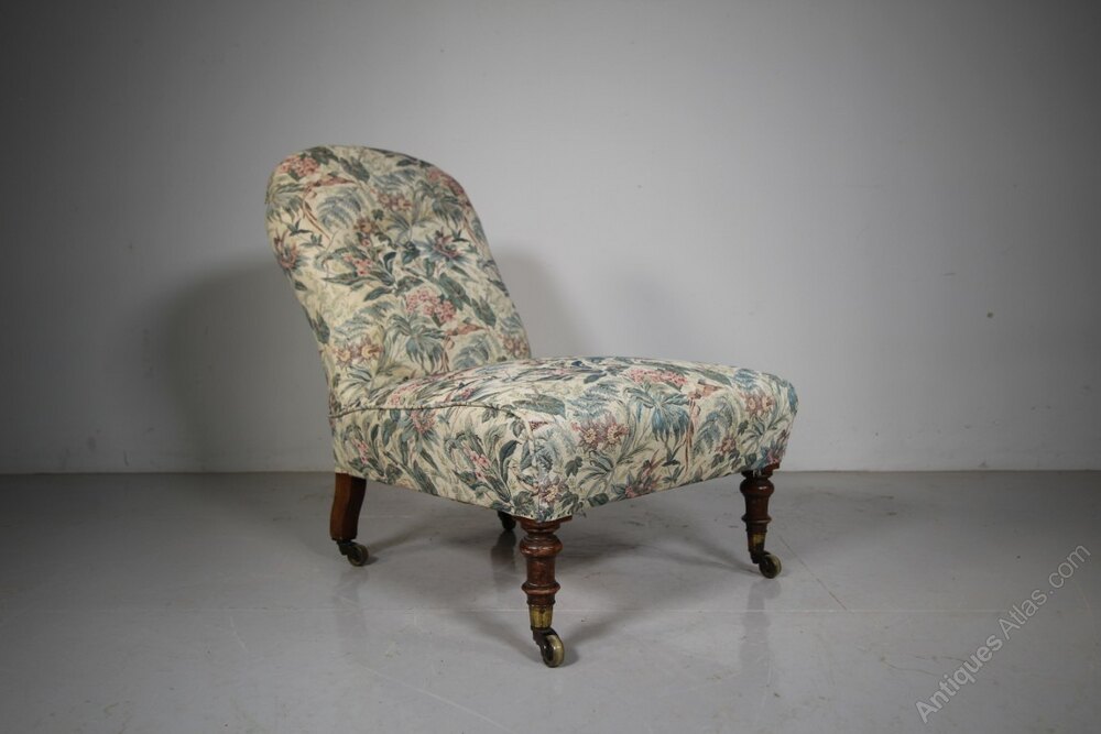 Early Howard & Sons Antique Low Upholstered Side ChairA beautifully shaped, early English antique traditionally upholstered side chair by Howard and Sons around 1840, prior to them stamping their name onto chairs, but stamping this with the Howard & Sons two lines of model and stock codes. In excellent condition, the frame is rock solid and the upholstered innards are all intact. Stands on walnut legs that have the original Copes & Collinson’s high quality, strong brass castors. A lovely early country house antique Howard chair, perfect for a bedroom.