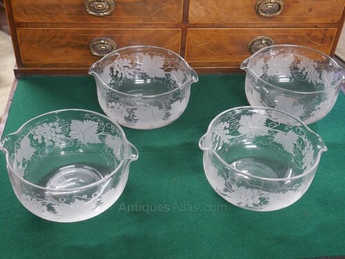 A lovely set of four engraved glass rinsers, with grape and vine decoration. A good set, minor usage scratches to the undersides(see photo 5) all in good condition and ready for use.