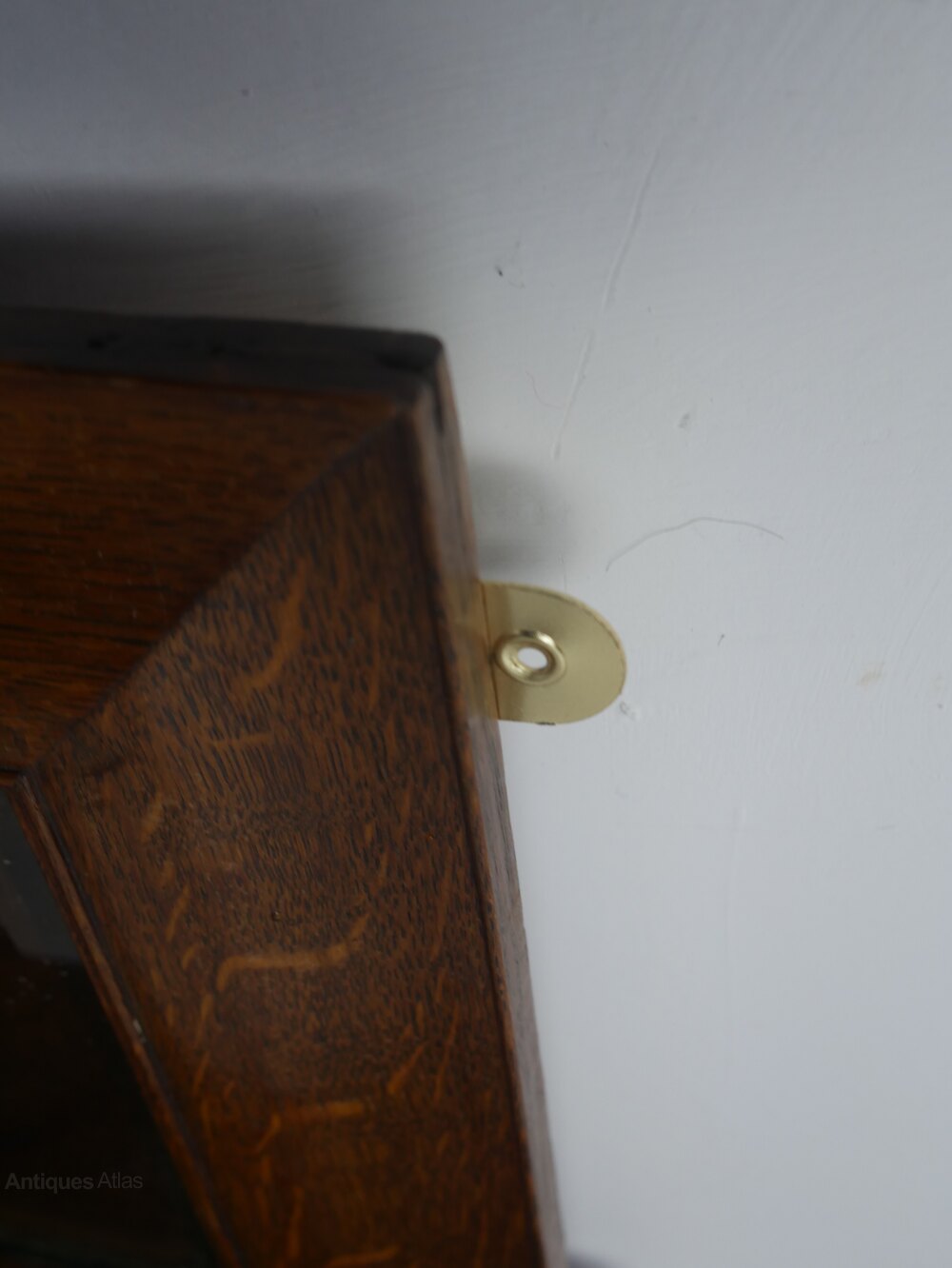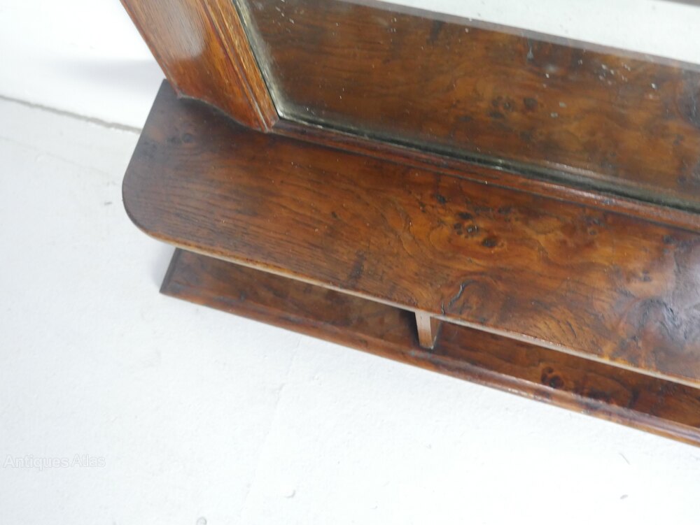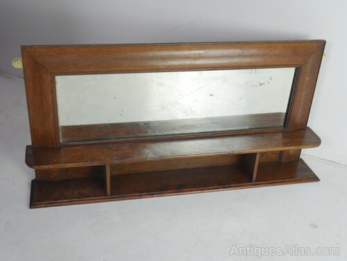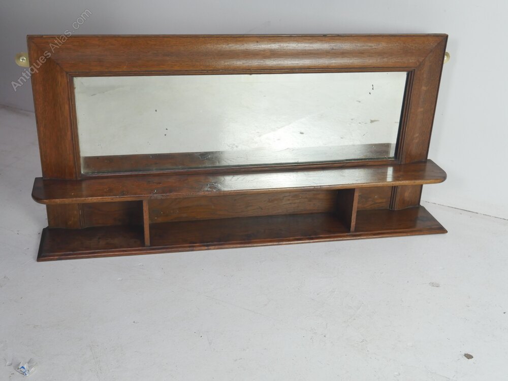 A very useful oak bevelled mirror with two oak shelves, two brass wall fittings, all in good strong condition, a few arks to the mirror made around 1920s in well figured oak all ready for use.UK Mainland delivery £30