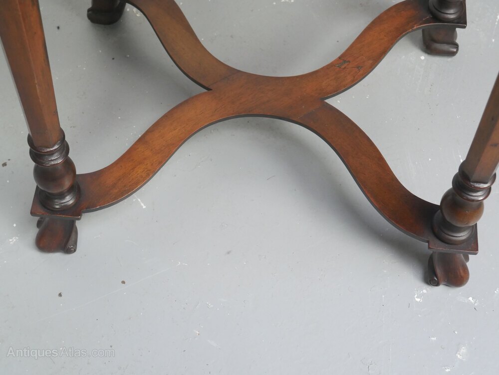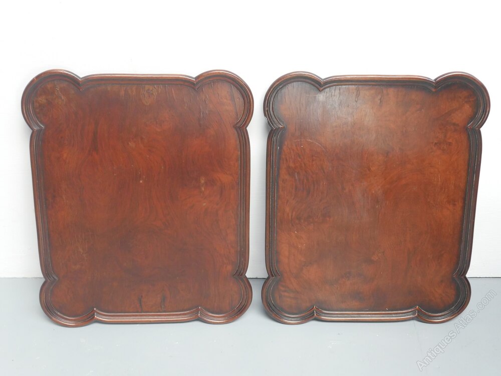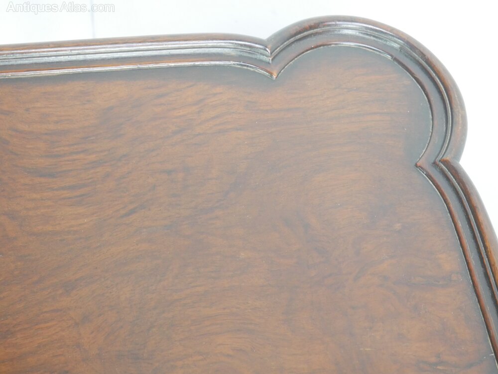 A neat pair of 1920s coffee or side tables in walnut, decorative shaped tops, walnut legs with supporting stretchers. Both tables in good strong condition, lift off tope, shaped tops, some old marks to one table, both all ready to use. Some extra photos available.Currently free UK mainland delivery available.