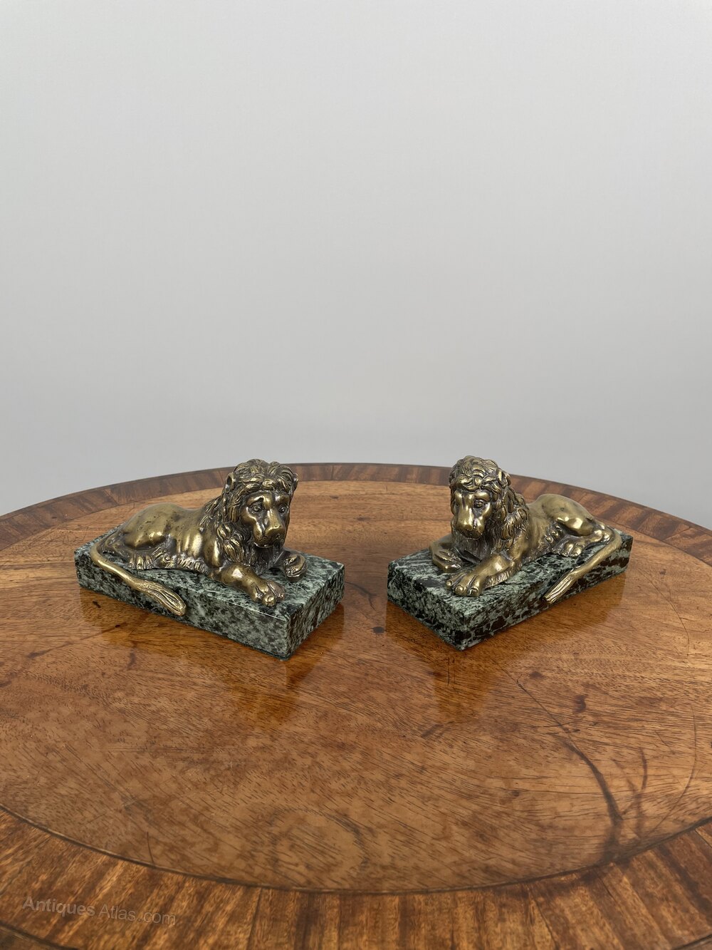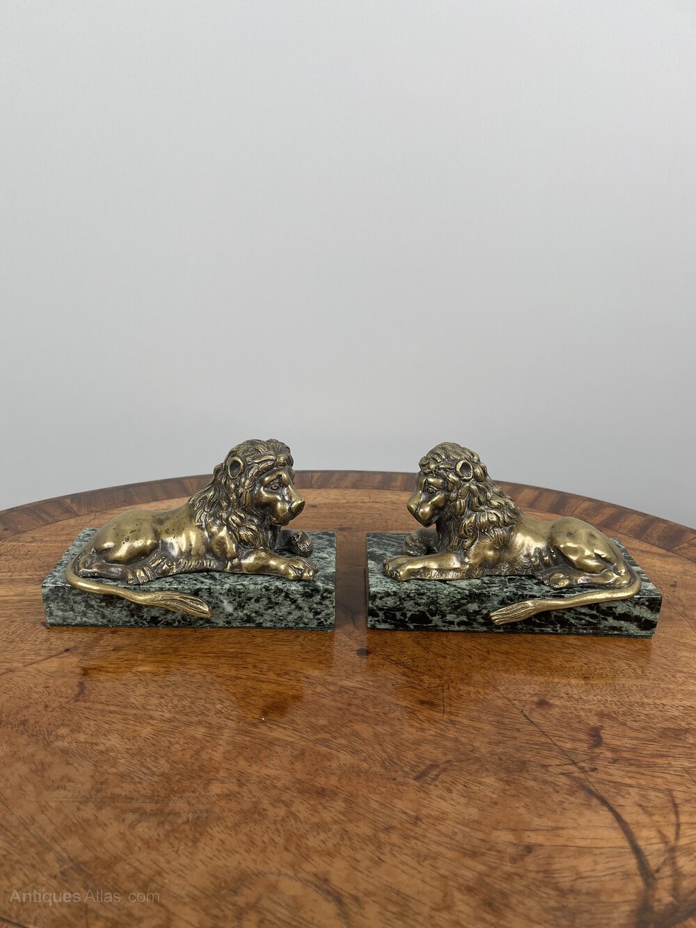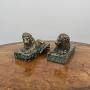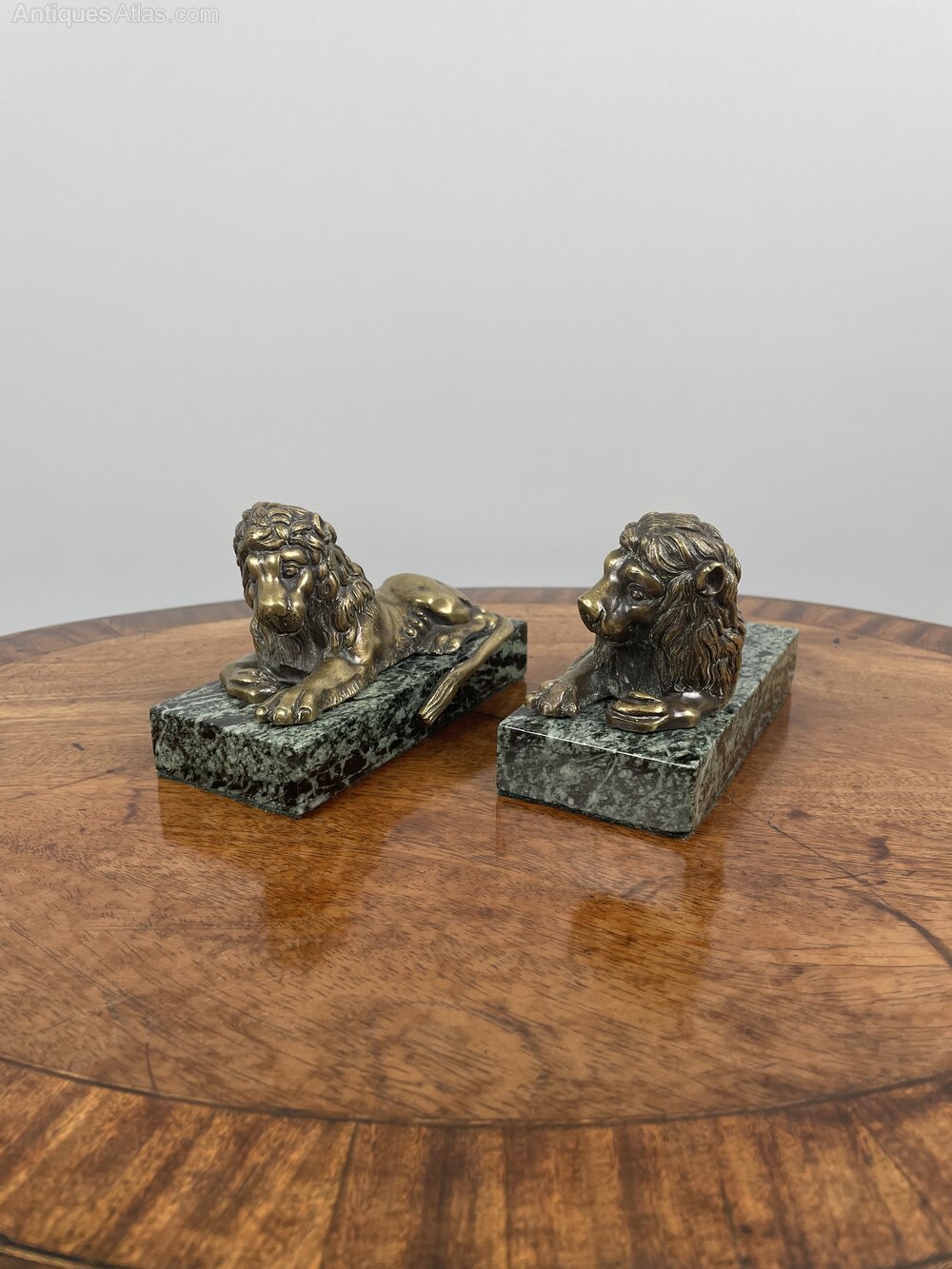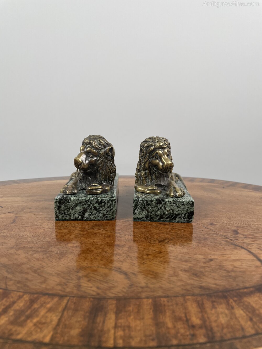 A pair of William IV bronze Grand Tour Lions on maurin green marble bases.English, circa 1830-40