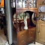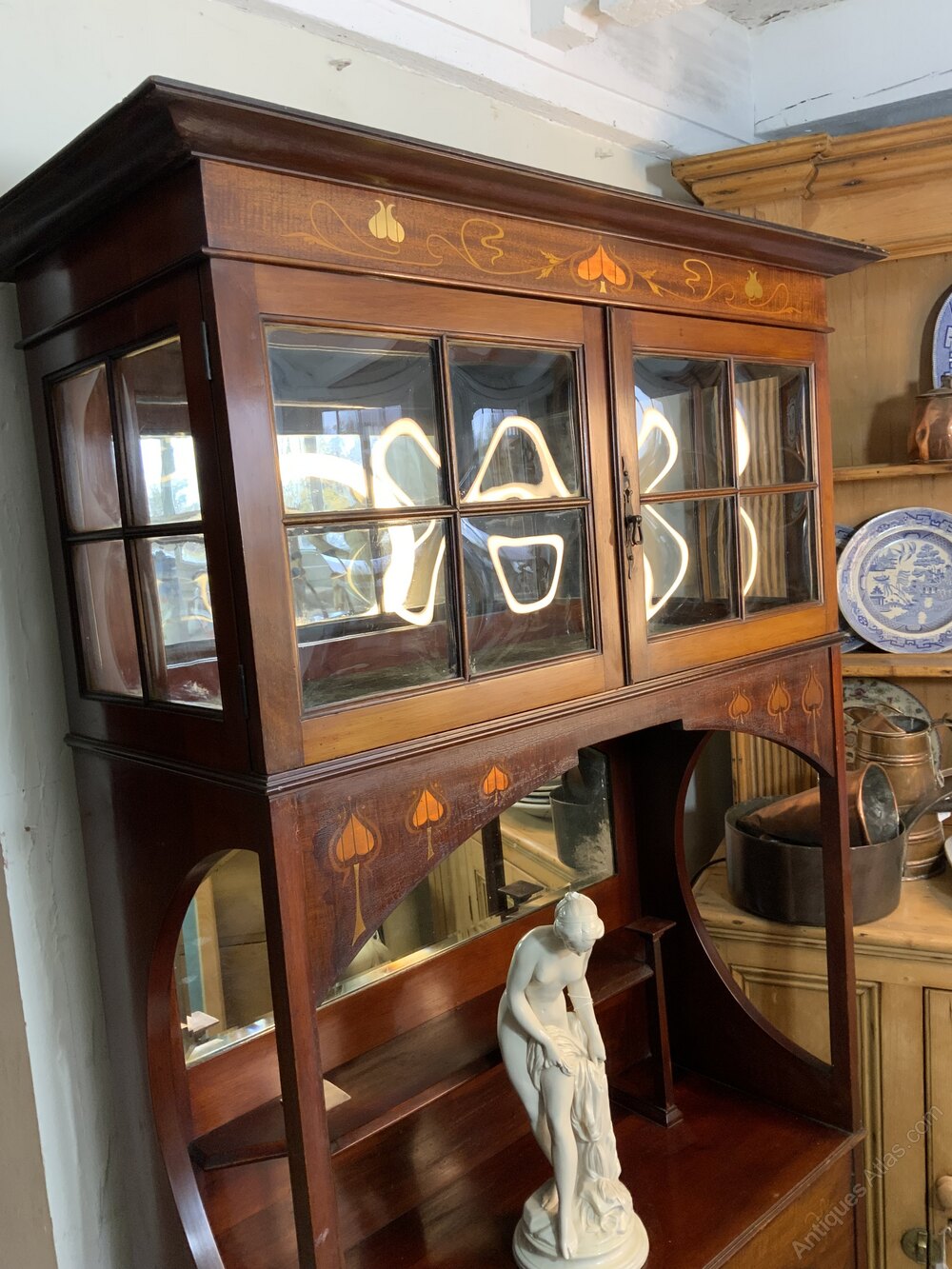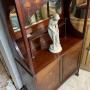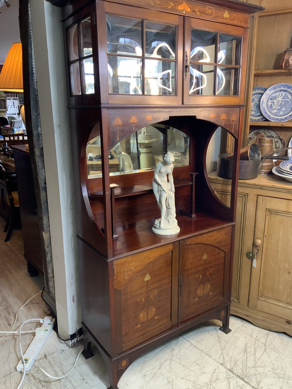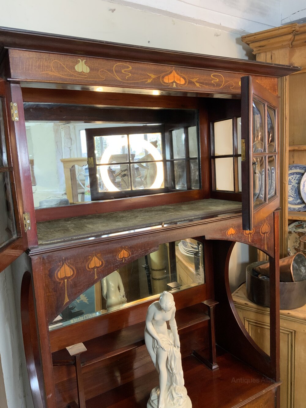 The open display shelf has arched inlay with flowers and bevelled mirror to the back.