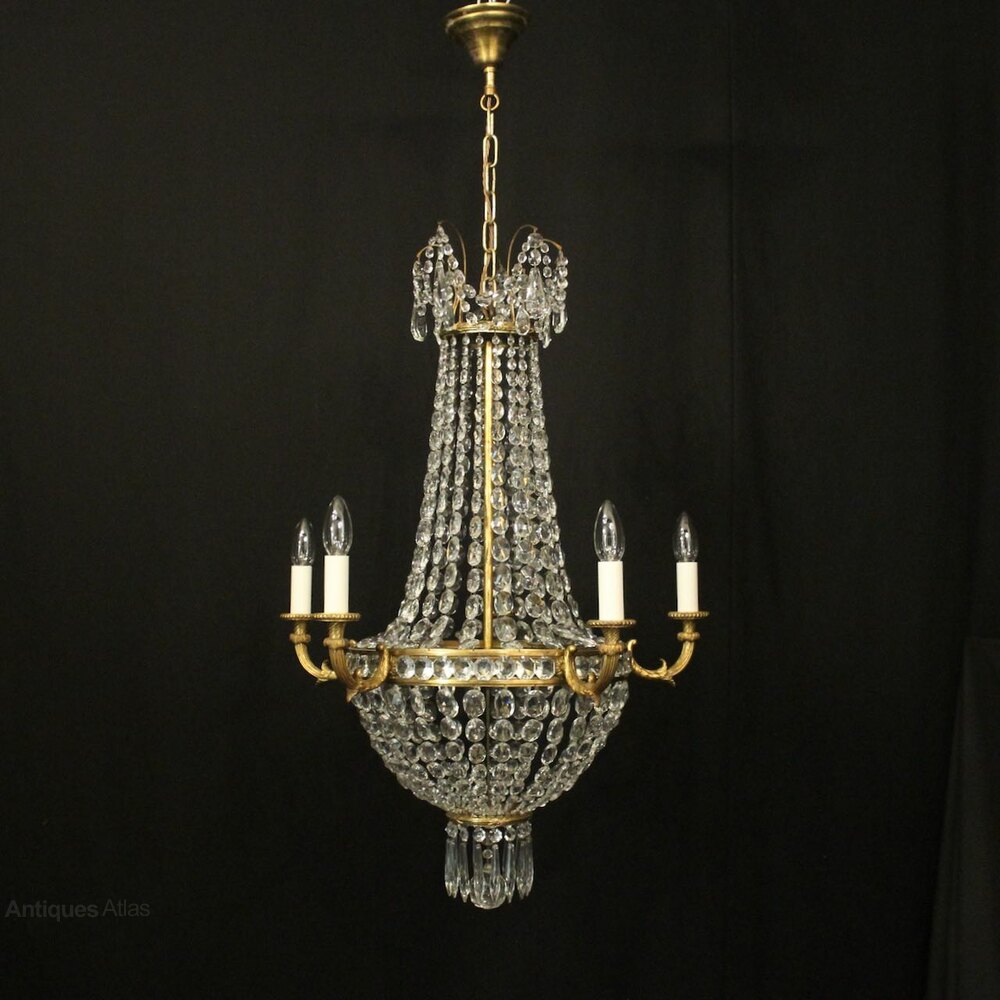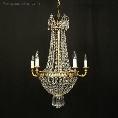 French Gilded 5 Light Tent & Waterfall Chandelier