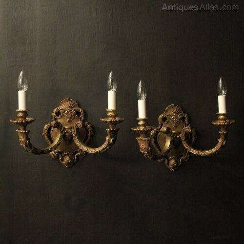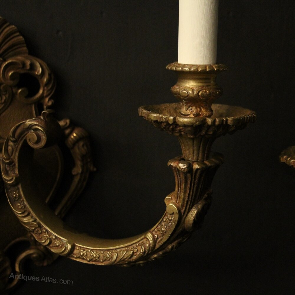 French Pair Of Gilded Bronze Antique Wall Lights
