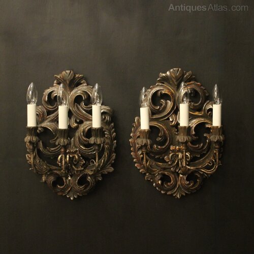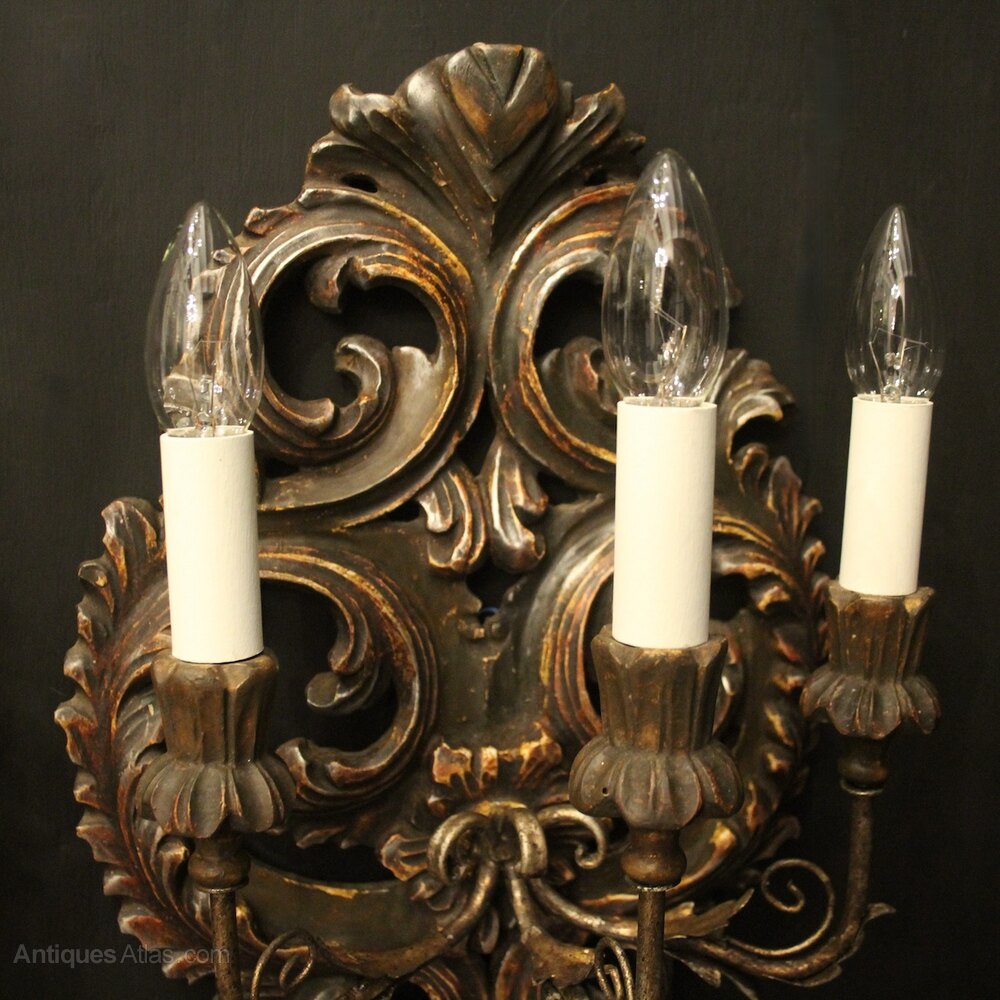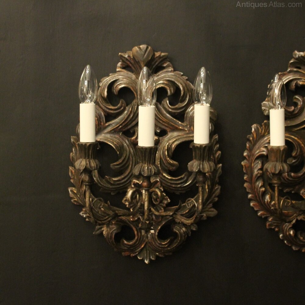 Florentine Pair Giltwood Antique Wall Lights