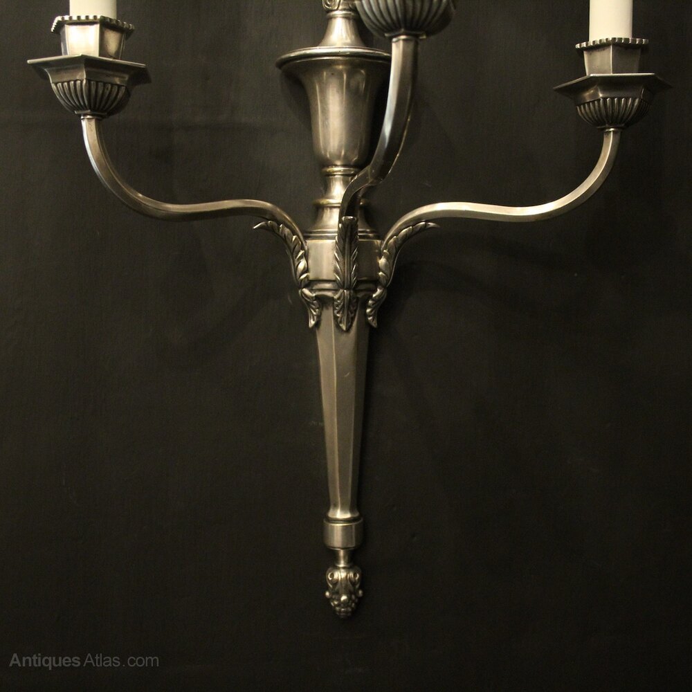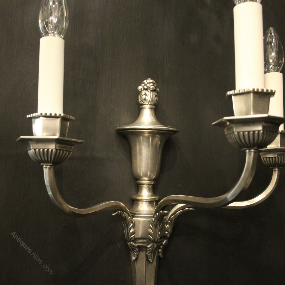 English Silvered Triple Arm Antique Wall Lights