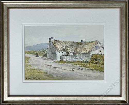 A delightful Isle of Man watercolour depicting the a thatched Manx cottage. Signed lower left and dated 99. This watercolour has been professionally cleaned, reframed.Charles Auty (Exh. 1881-1919) lived and worked in London and the Isle of Man and exhibited in Liverpool.