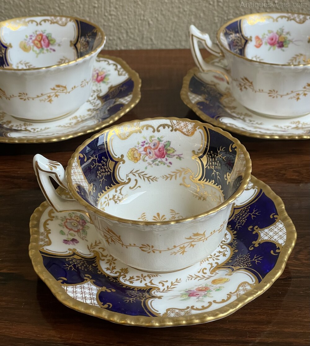 Victorian Batwing Coalport Tea Cups & Saucers