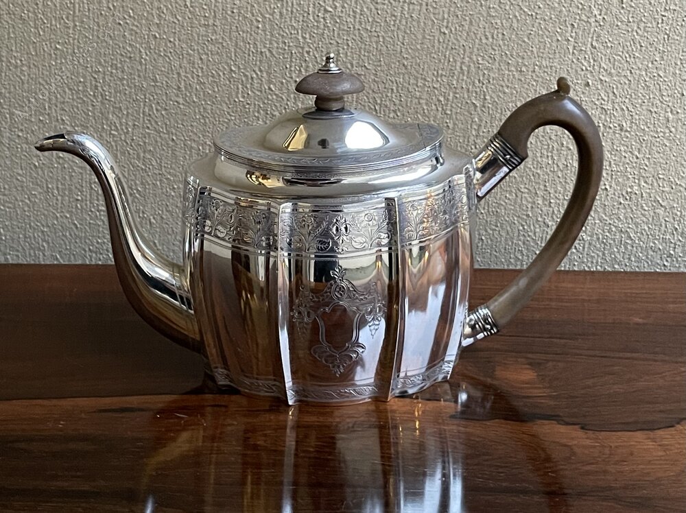 George III Bright Cut Silver Teapot, 1798