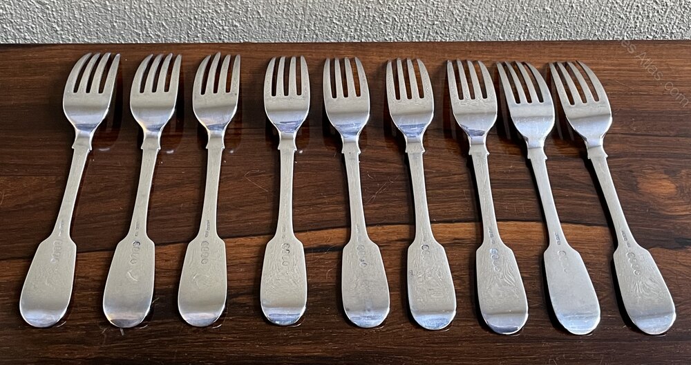 Set of Nine Irish Silver Dinner Forks, Dublin 1839