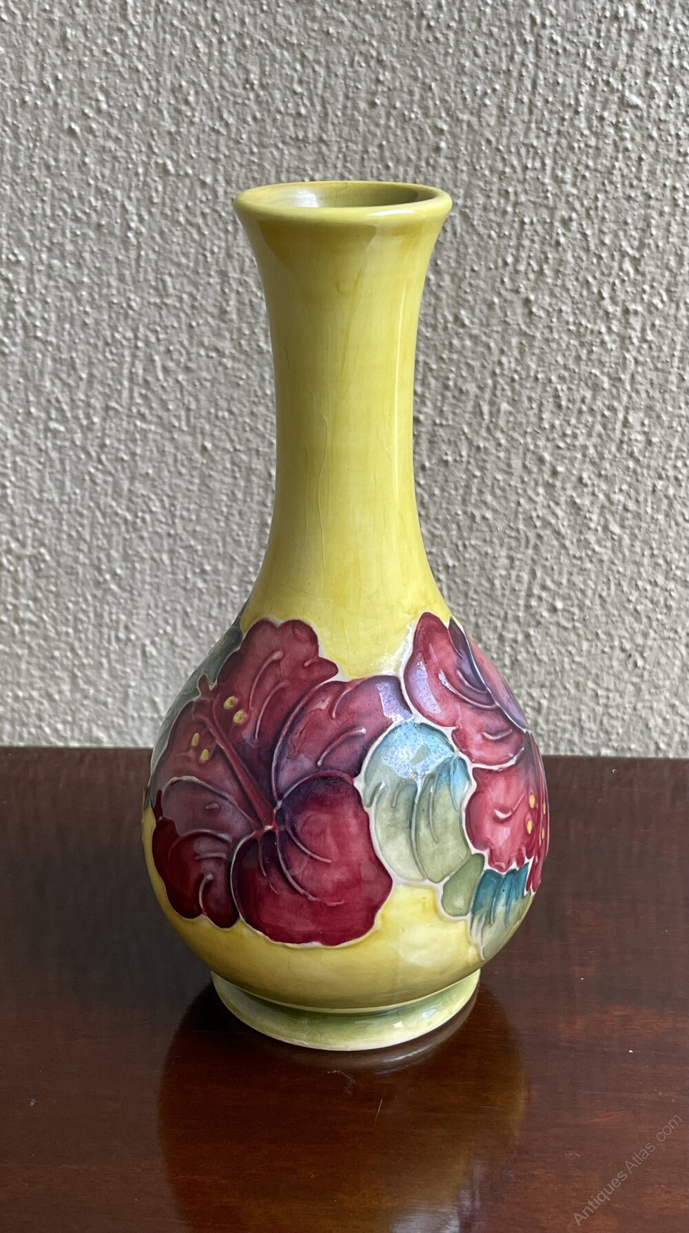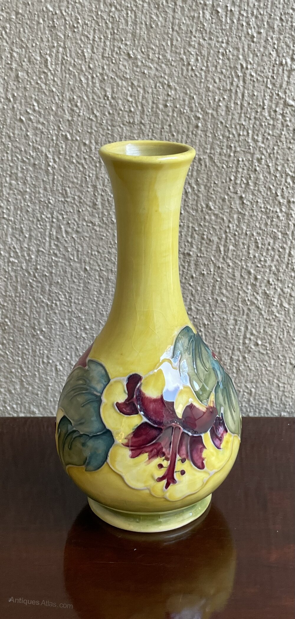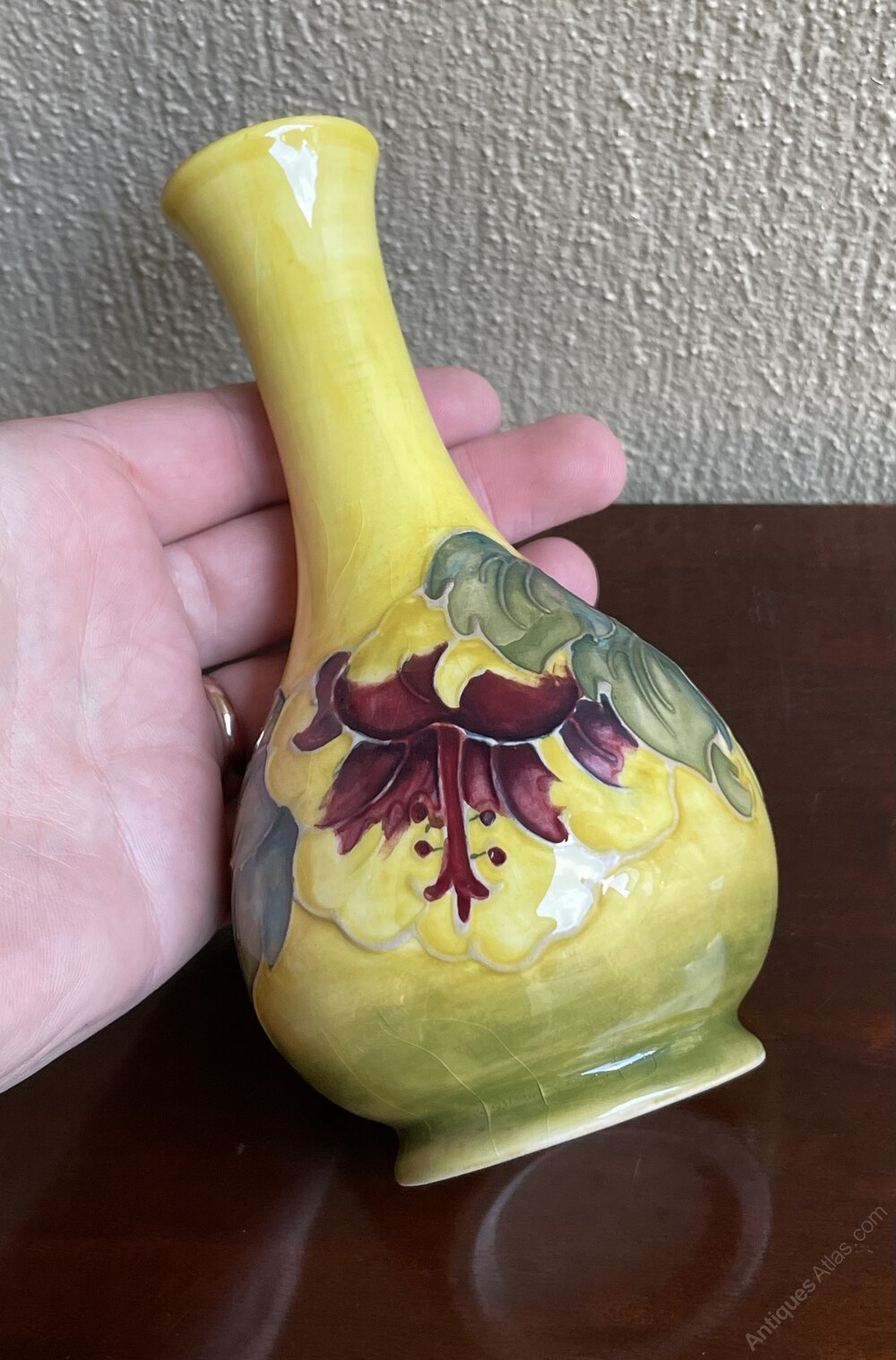 Moorcroft Hibiscus Posy Vase on Yellow Background