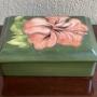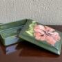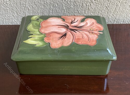 Moorcroft Lidded Box Coral Hibiscus on Olive Green