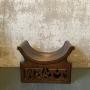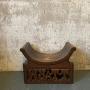 This stool traditionally would have had images of animals on the sides. During the Colonial period local makers took commissions with English surnames.