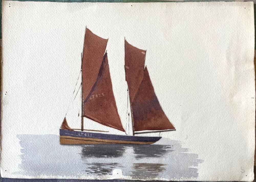 A watercolour painting of a typical Lowestoft fishing boat from the Victorian period.DateLate 19th Century