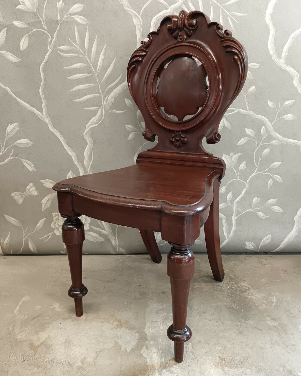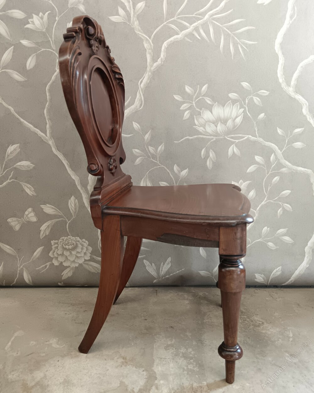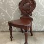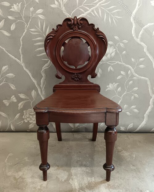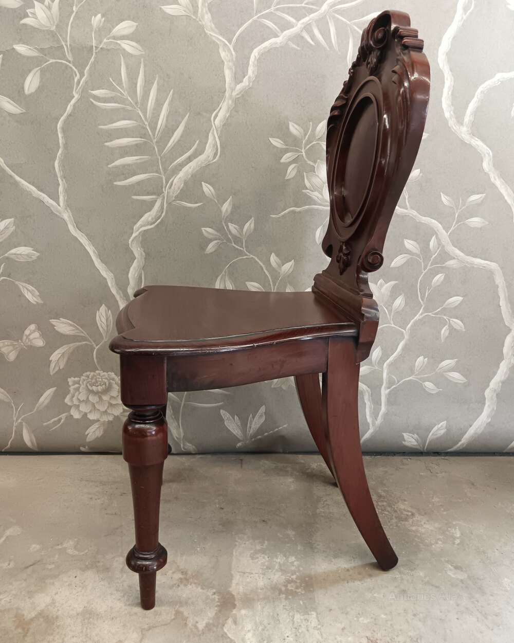 This is a finely crafted Victorian chair constructed from Cuban mahogany, renowned for its substantial quality.The design features subtly sabre-shaped rear legs, turned front legs and a typical appealing shaped carved back.