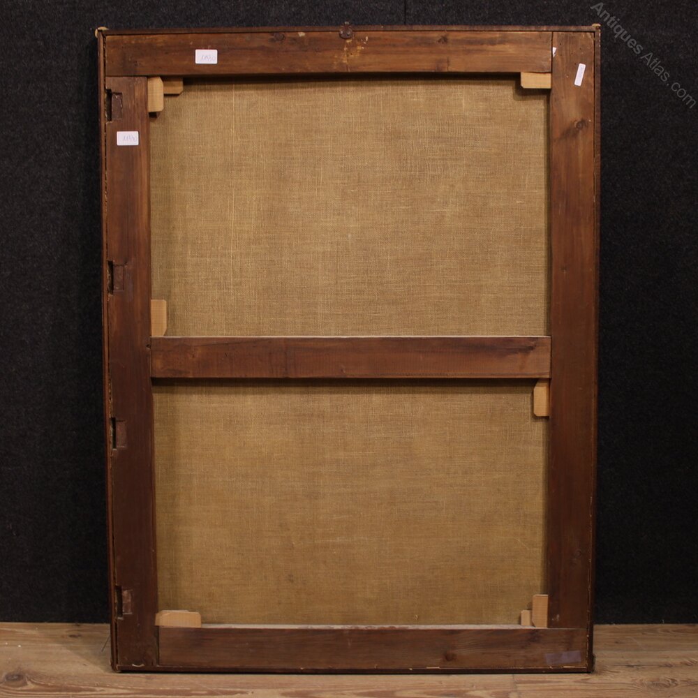 ConditionThe artwork has already been restored with relining, replacement of the stretcher, and repainting in small areas. Overall, in good condition.