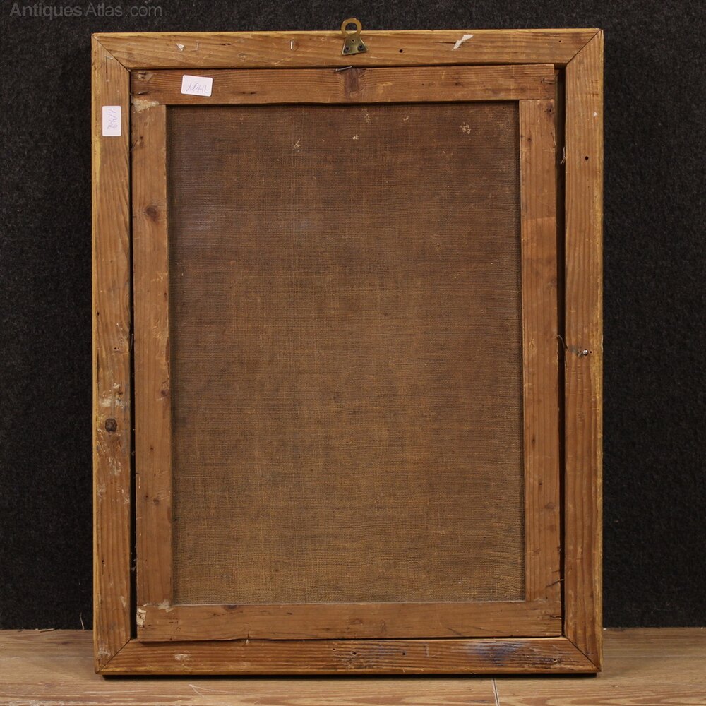 ConditionThe painting has already been restored with relining, replacement of the stretcher, and restoration of color in small areas overall, it is in good condition.