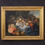 An important 17th-century Italian painting. This artwork oil on canvas depicts a large still life with fruit, of remarkable pictorial quality. Immersed in a splendid landscape, we find a table laden with fruit and covered in precious damask fabrics. We see velvety peaches, ripe figs, pears, citrus fruits, a bunch of grapes, and an open watermelon revealing its dark seeds. On the right, we see a flask of wine and a plate with sweets and an elegant glass goblet.The attention to different surfaces and naturalistic details, such as the dew on the pears' skins, the transparency of the glass, and the moist flesh of the watermelon, is noteworthy. The language and color palette hark back to the Northern Italian tradition of the second half of the 17th century. The balance between opulence and restraint suggests a silent reflection on the fleeting nature of life, making the painting not only an exercise in technical prowess but also a profoundly cultured work.