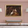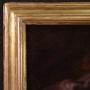 Antique Italian painting from the 17th century. Oil artwork on canvas depicting a biblical subject, Abraham sending away Hagar and Ishmael, of excellent pictorial quality. According to the story of Genesis, at the behest of his wife Sarah, Abraham was forced to chase away the Egyptian slave Hagar with whom he had previously had another son named Ishmael. All this had happened to prevent Isaac from having to share his father's inheritance with him. A painting of great pictorial intensity, characterized by a skilful use of chiaroscuro and a remarkable quality of the drapery.Large painting adorned with a 19th century carved and gilded wooden frame, with some signs of aging. Painting that has undergone restoration with relining, replacement of the frame and restoration of color in some places (see photo). Overall in good state of conservation. Sight size H 102 x W 145 cm.