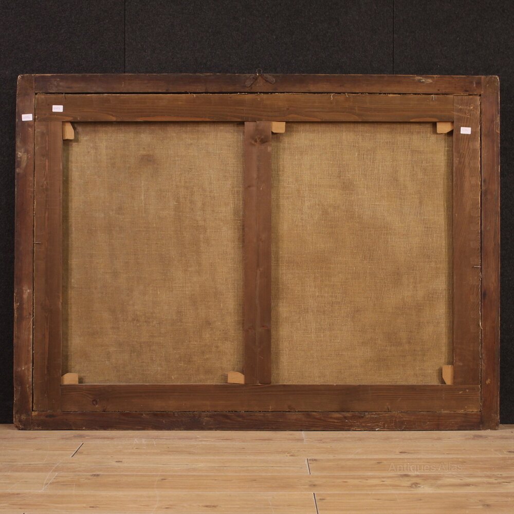 ConditionPainting that has undergone restoration with relining, replacement of the frame and restoration of color in some places (see photo). Overall in good state of conservation.
