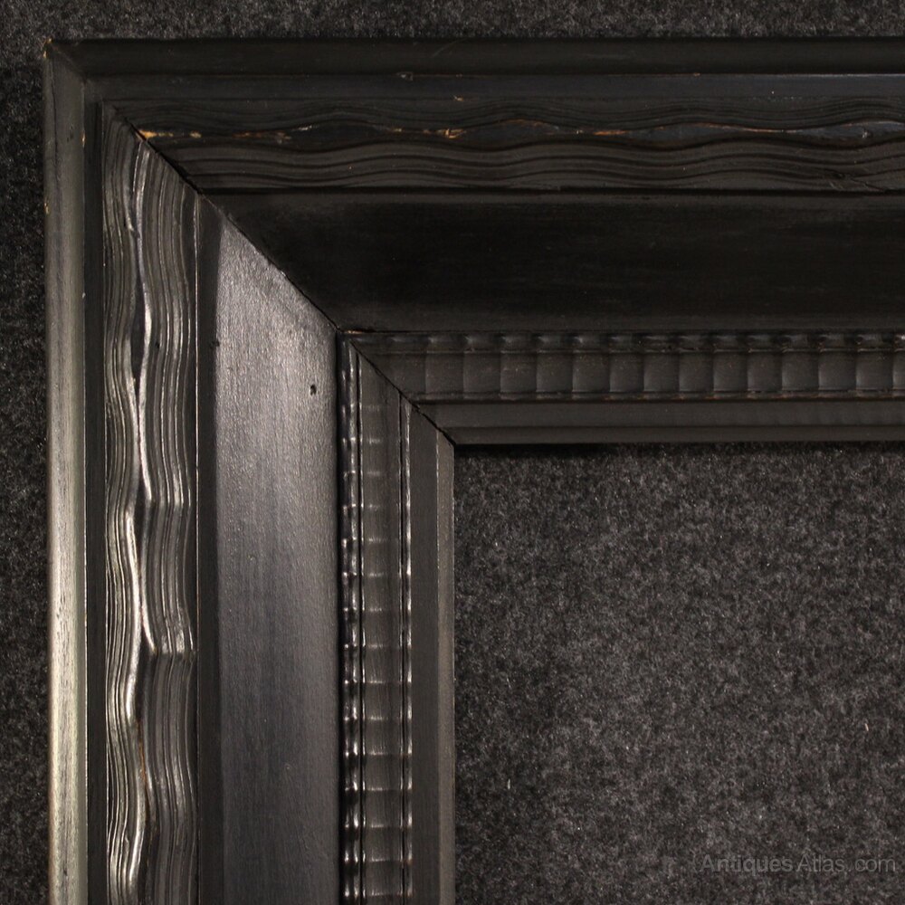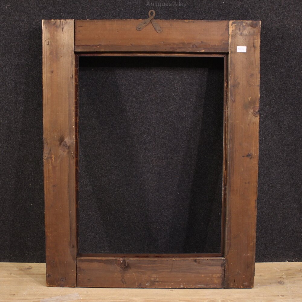 Italian frame from the first half of the 20th century. Guilloche-style carved wooden furniture with beautiful lines and a pleasing décor. The frame can hold a painting or mirror with maximum dimensions of H 76 x W 56 cm. It can be hung vertically or horizontally by moving the appropriate hook (see photo). This well-proportioned frame can easily be placed in various locations around the home, making it ideal for antique dealers and interior decorators. In good condition.As each of our products will be accompanied by a certificate of authenticity and warranty and photographic documentation. Every item will be packed in a custom-made wooden box. Free shipping in Europe and UK (import and custom duties NOT included). Worldwide shipping at affordable prices, ask us a shipping quote. BUY IN INSTALLMENTS INTEREST FREE.