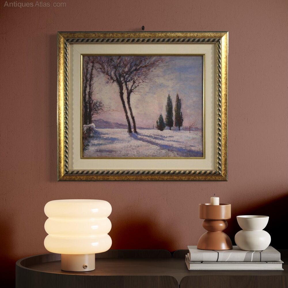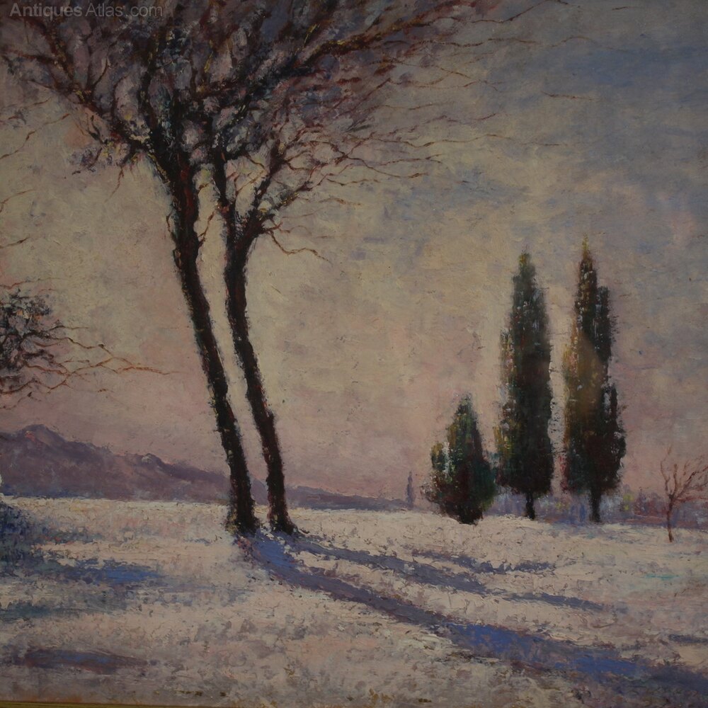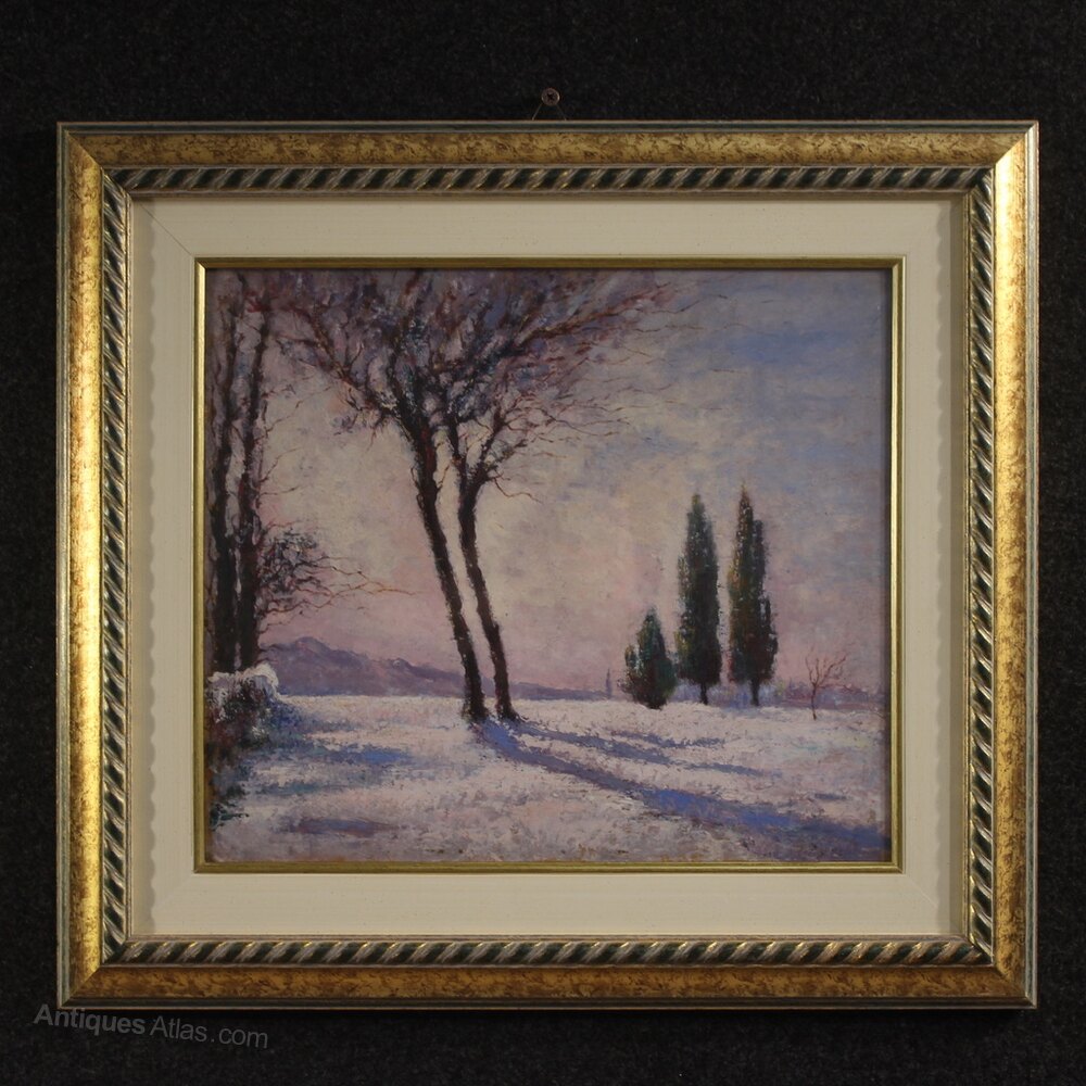Italian Snowy Landscape Painting Signed And Dated
