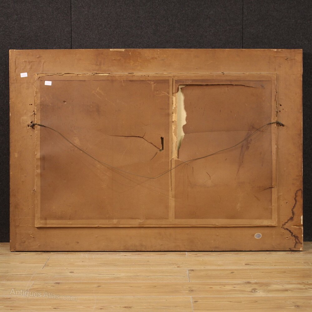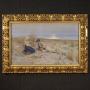 Antique Italian watercolor from the early 20th century. Mixed technique drawing mounted on a wooden frame depicting Seascape with young shepherds of excellent pictorial quality. Painting of great size and impact adorned with a non-coeval finely carved and gilded frame (see picture). Frame that shows some signs of aging and the lack of 3 wooden decorations (see picture). Framework signed in the lower right corner (see picture) attributable to the painter Enrico Nardi (1864-1947) lacking authentication. Watercolor of fabulous delicacy, pleasant glimpse with calm sea and reflection of the sun on the water, in the background. The two children depicted in the foreground are very well painted (see picture), she is intent on playing the clarinet while the shepherd boy is attentive and lying at her side. Frame complete with protective glass. Framework overall in good condition. Structurally sound frame with some small defects. Sight size H 74 X W 121 cmAs each of our products will be accompanied by a certificate of authenticity and warranty and photographic documentation. Every item will be packed in a custom-made wooden box. Free shipping in Europe and UK (import and custom duties NOT included). Worldwide shipping at affordable prices, ask us a shipping quote. BUY IN INSTALLMENTS INTEREST FREE.