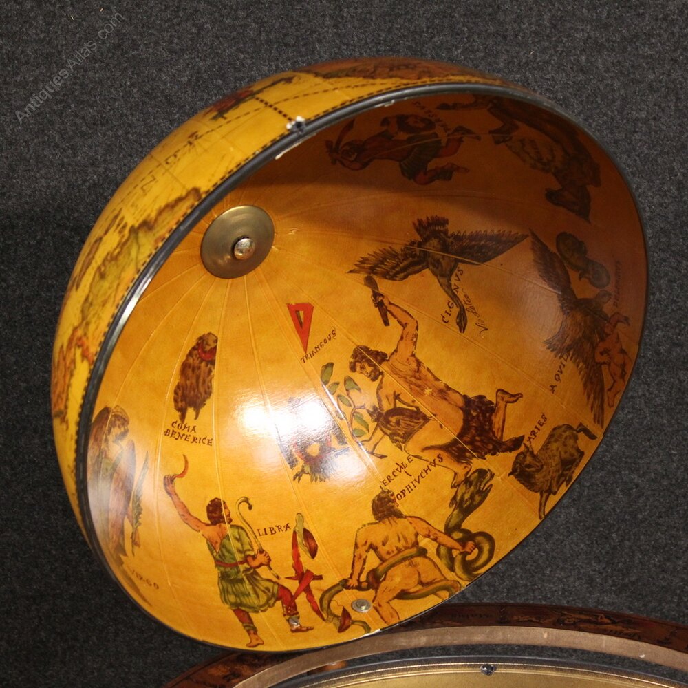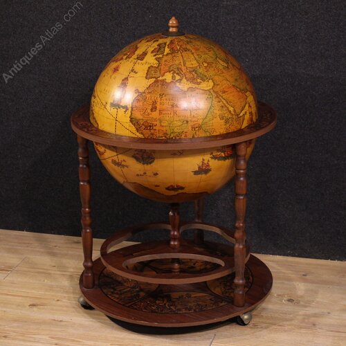 Italian bar cabinet from the second half of the 20th century. This globe is supported by a wooden frame and sits on casters. It features a beautiful design and attractive furnishings. The globe conceals a compartment for bottles and glasses. Additional bottles can be placed on the base for display (see photo). This beautifully designed and proportioned cabinet is structurally sound and in overall good condition.As each of our products will be accompanied by a certificate of authenticity and warranty and photographic documentation. Every item will be packed in a custom-made wooden box. Free shipping in Europe and UK (import and custom duties NOT included). Worldwide shipping at affordable prices, ask us a shipping quote. BUY IN INSTALLMENTS INTEREST FREE.