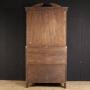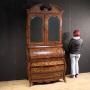 Dutch trumeau from the second half of the 20th century. A curved front and straight sides of excellent quality, richly inlaid with walnut, burl, rosewood, maple, mahogany, and fruitwood, decorated with floral and butterfly motifs. This double-body trumeau features three spacious drawers in the lower section, a pull-out writing surface, and numerous small drawers and document compartments within the roller shutter (see photo).The upper body features recessed, beveled, antique-finish glass doors. The highly functional and capacious interior, lined with damask fabric, also features numerous small drawers and columns for secret document storage (see photo). This stunning piece of furniture, ideal for a living room or study, is a striking addition to antique dealers and interior decorators. Complete with three working keys (upper doors, roller shutter, and internal door), the trumeau is in overall good condition.