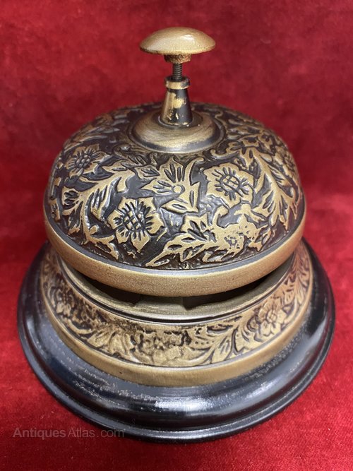 Vintage French Embossed Brass Desk Bell