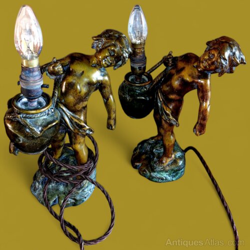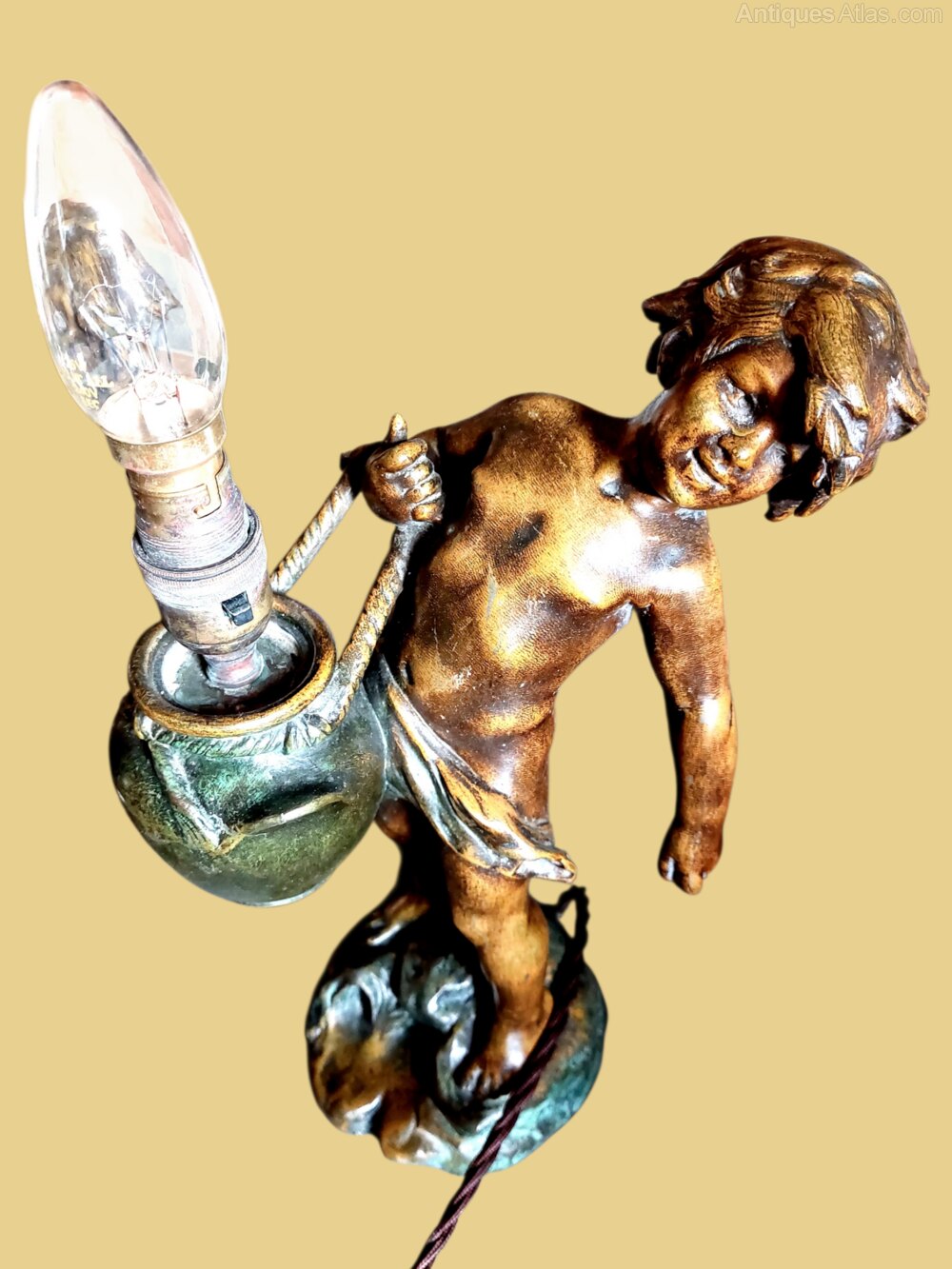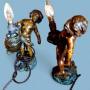 Pair Antique Bronzed French Cherub Table Lamps