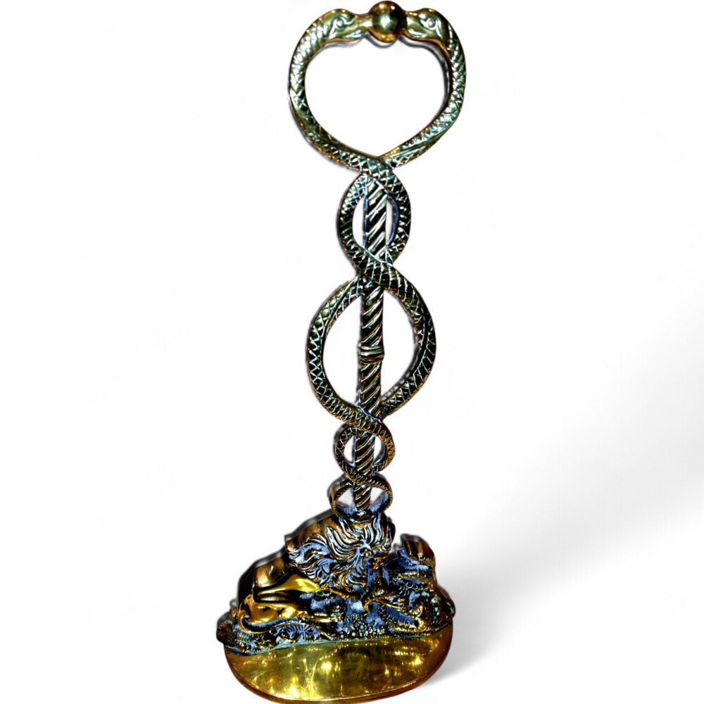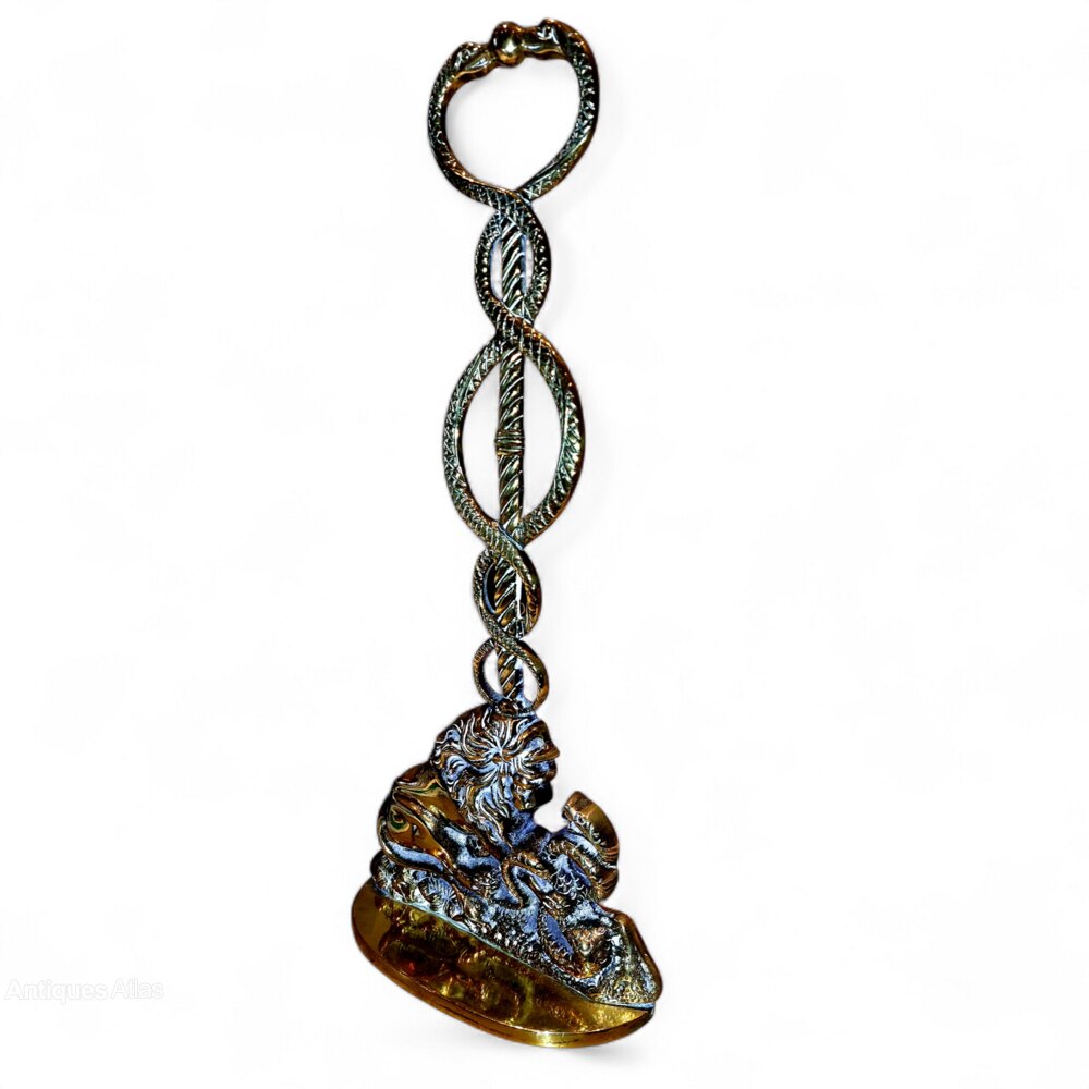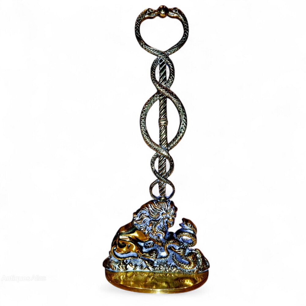 A stunning Country House Regency and of the period cast brass and iron Lion and Serpent doorstop. C.1830. In a fabulous polished patina which only years of polishing can achieve. Large in size at 17 1/2" tall. The serpents rising to form the handle of the doorstop. One historical blacksmith repair to the rear of the upright (see pic 4). Has been done the correct way and cannot be seen from the front. Good weight at 3.3 kilos.UK MAINLAND DELIVERY TRACKED AND INSURED INCLUDED IN PRICE.