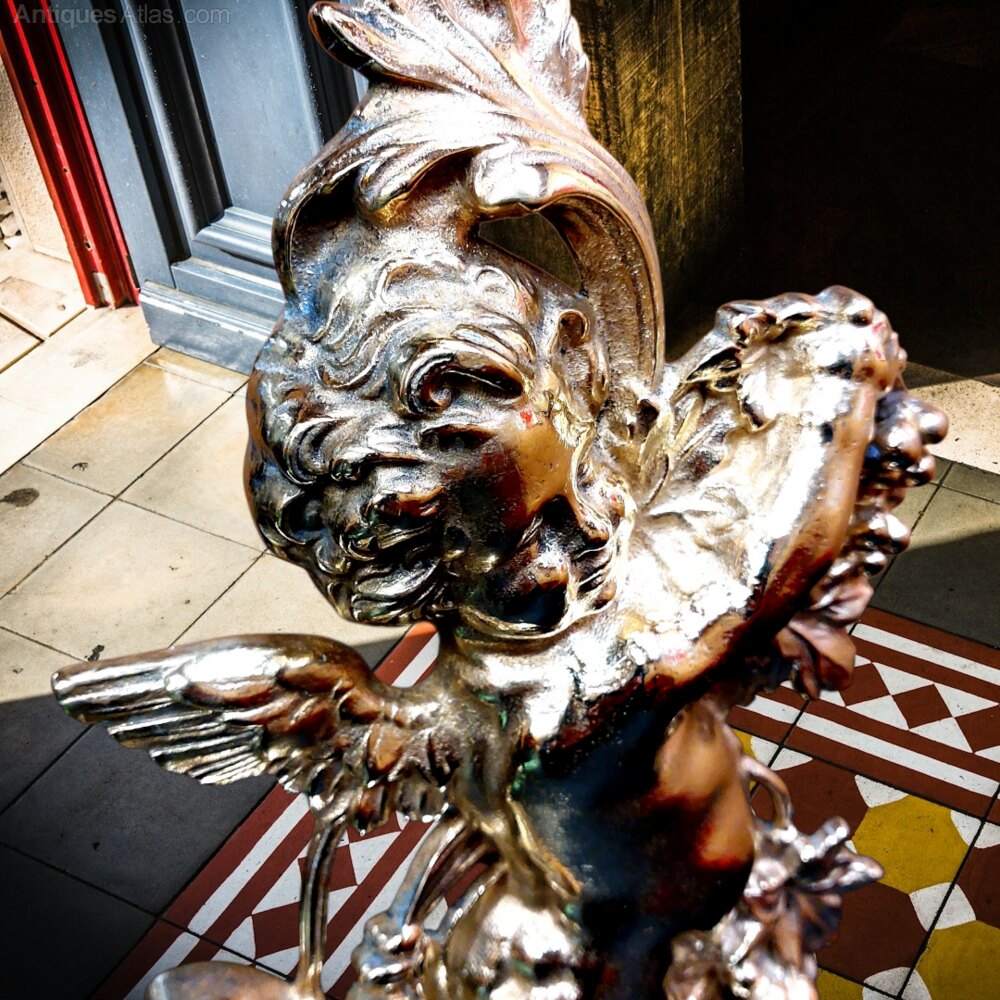 Antique Large Cherub Cast Brass Doorstop