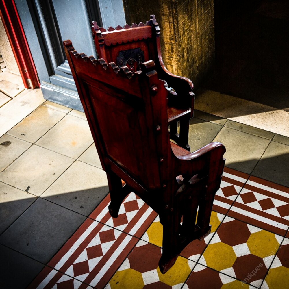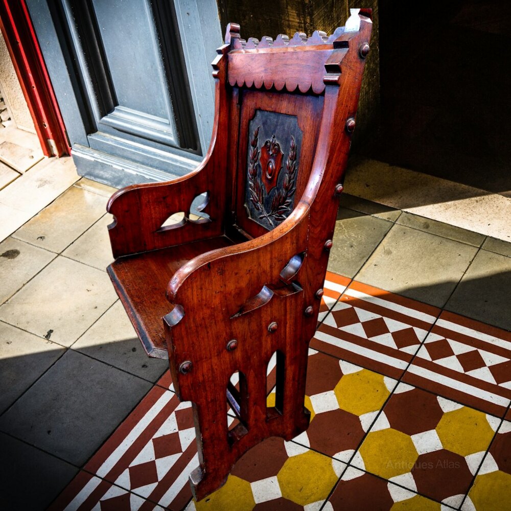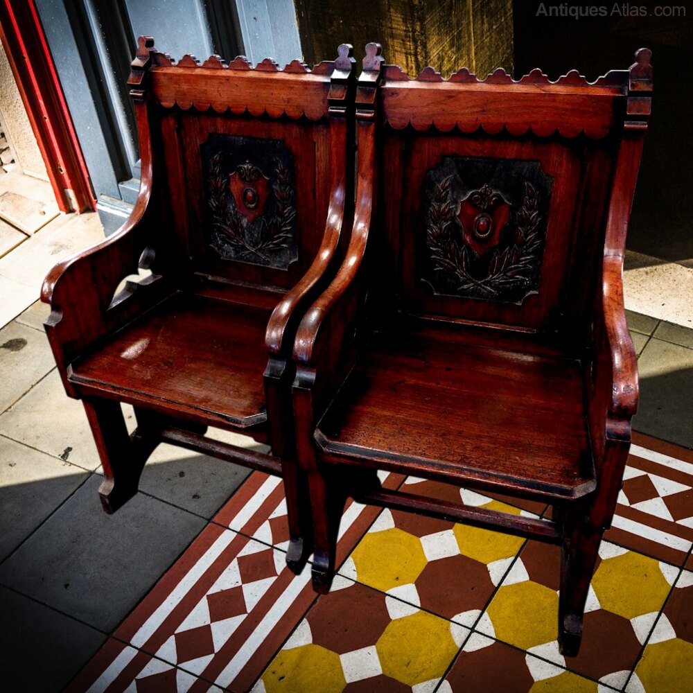 Pair of Antique Gothic Revival Hall Seats