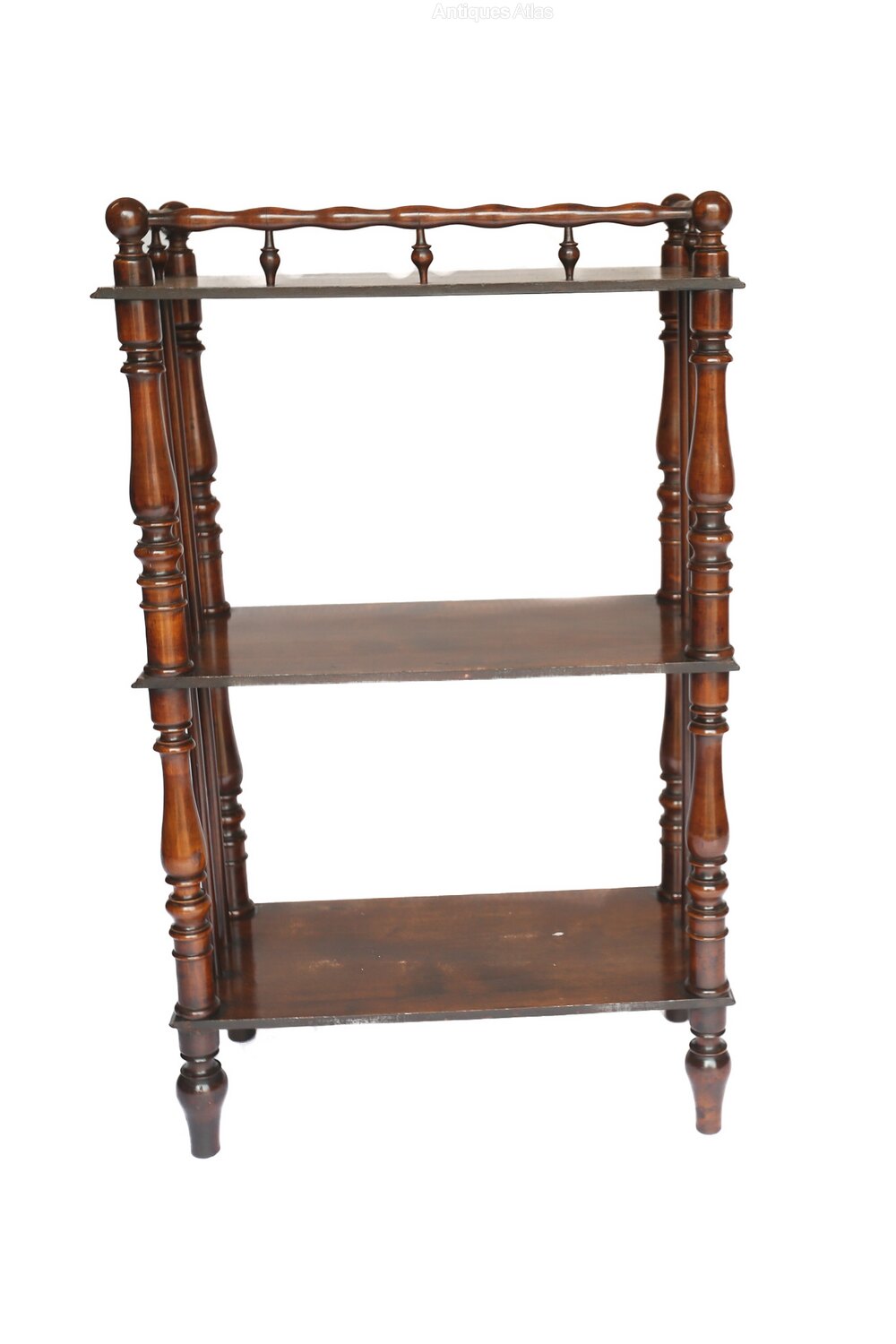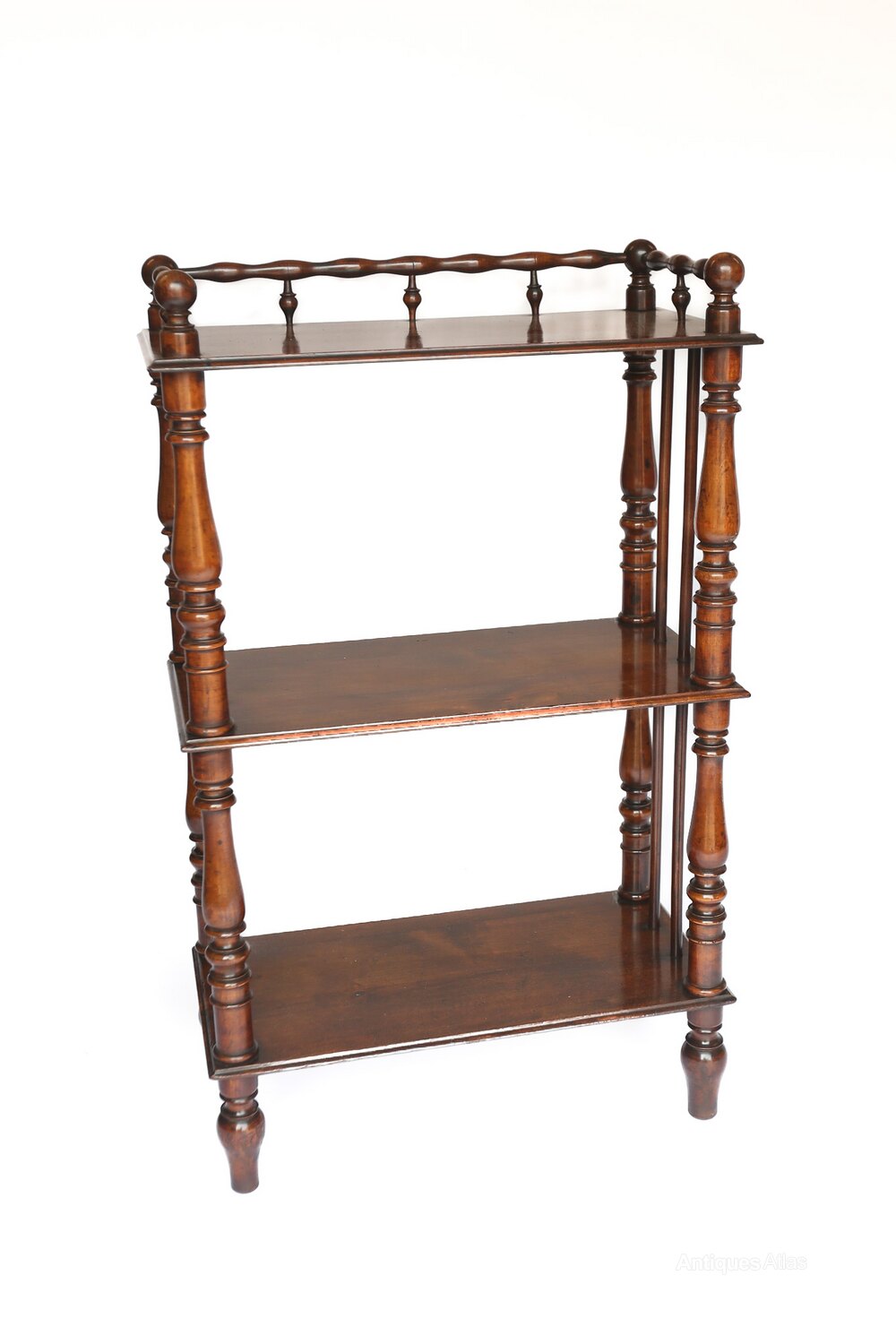 Victorian Fruitwood 3 Tier WhatnotThree Quarter turned Bobbin Gallery at top